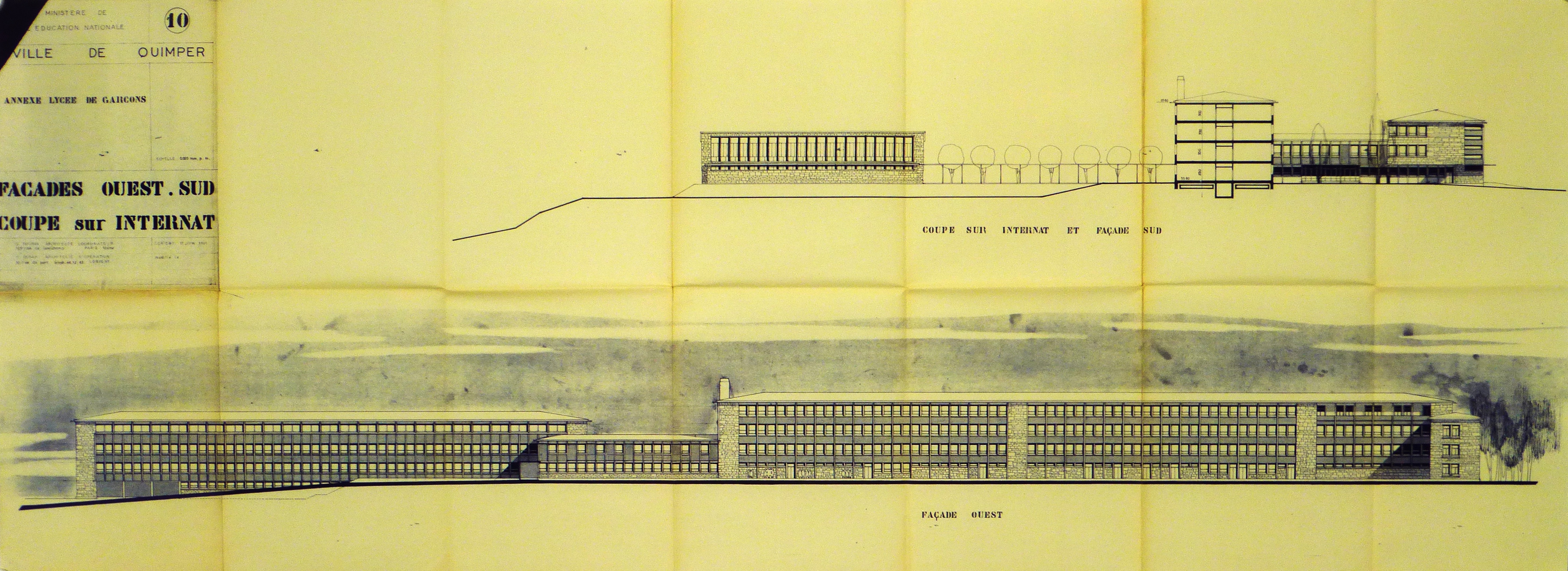 Coupe sur internat et façade sud, par G. Tourry et H. Conan (1961)Immatriculation