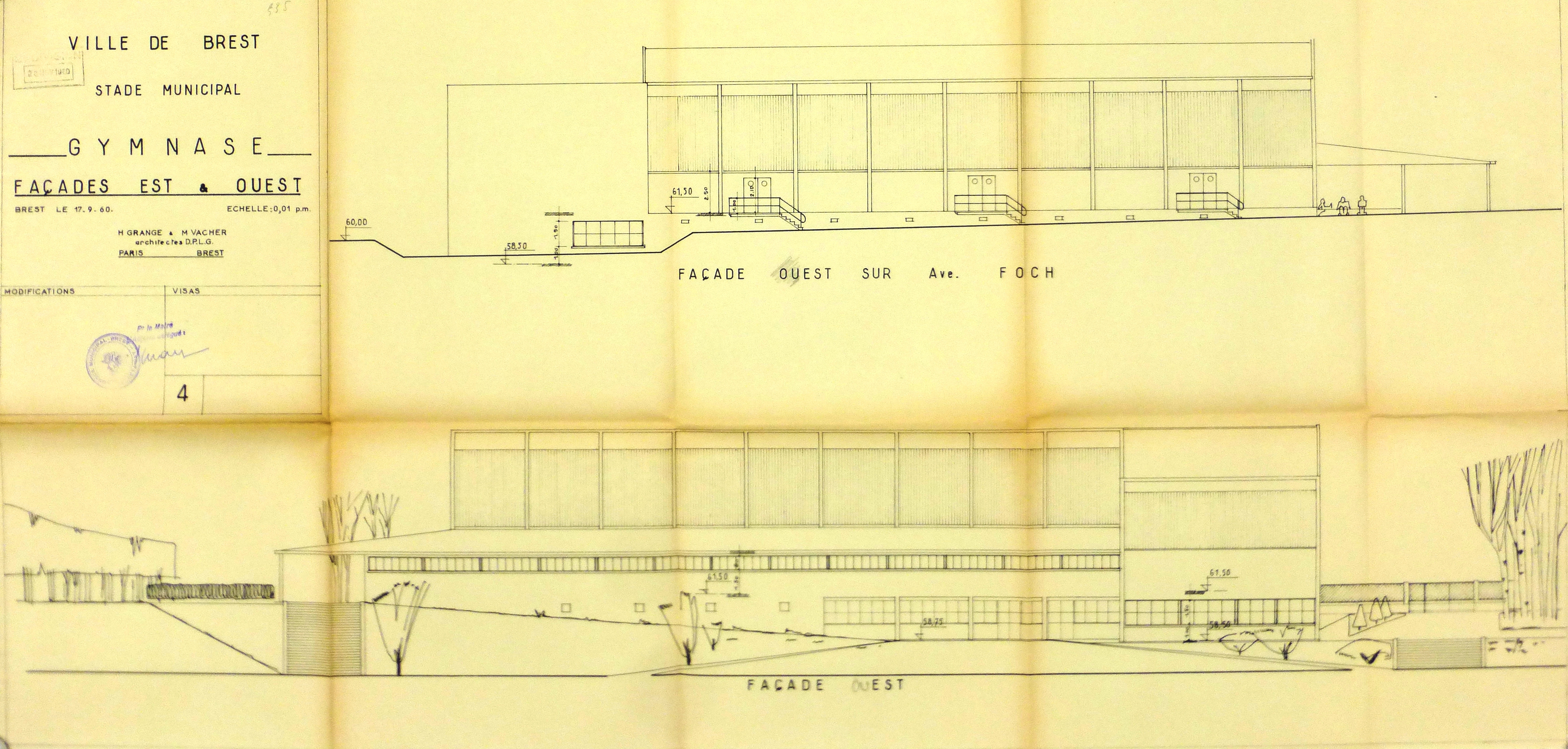 AN : 19771564/12. Façades est et ouest. H. Grangé et M. Vacher, 1960.