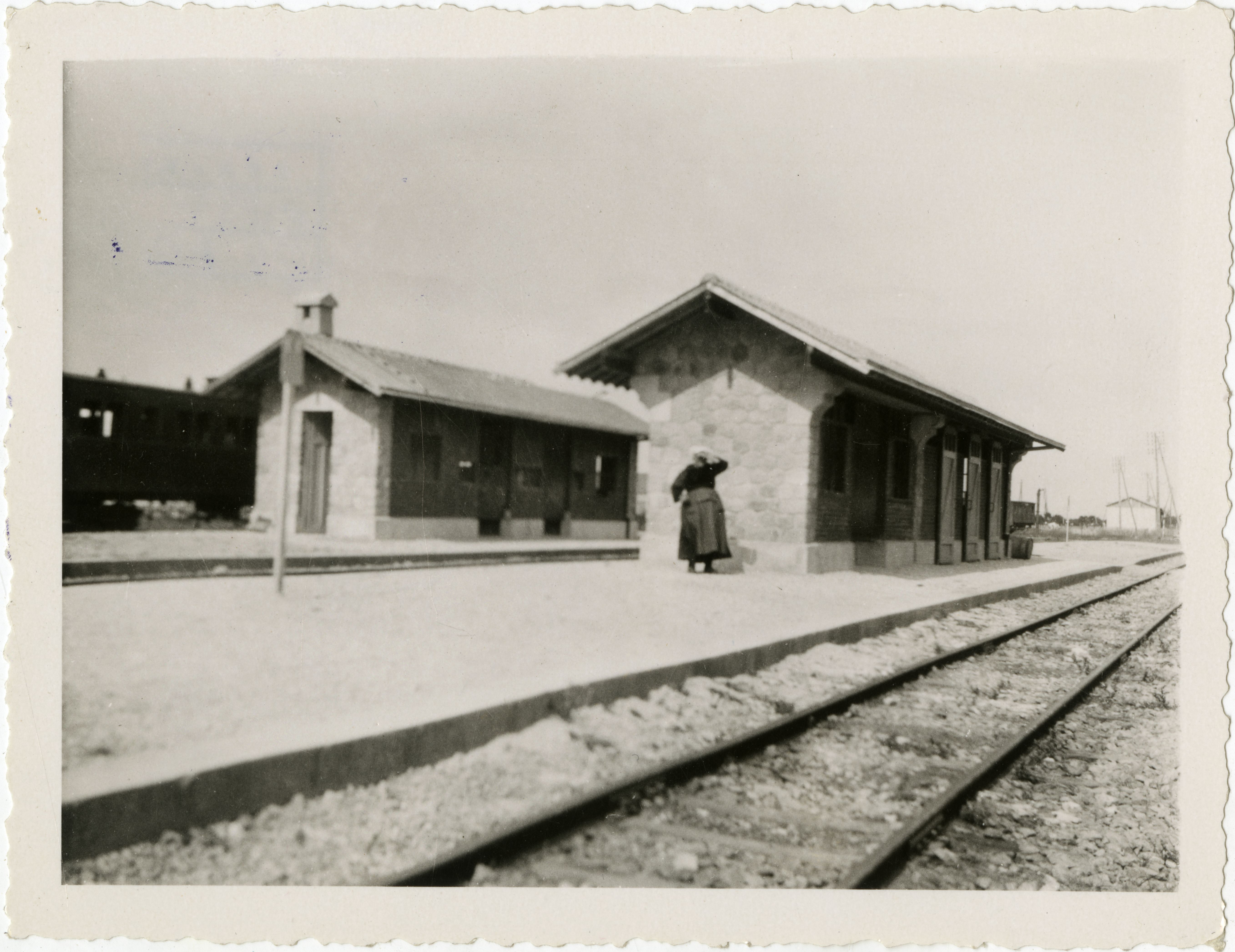La gare de Crozon-Morgat. Les quais avec deux abris pour les voyageurs en 1923. Fonds Polti. CNAM/SIAF/Cité de l'architecture et du patrimoine/Archives d'architecture du XXe siècleImmatriculation