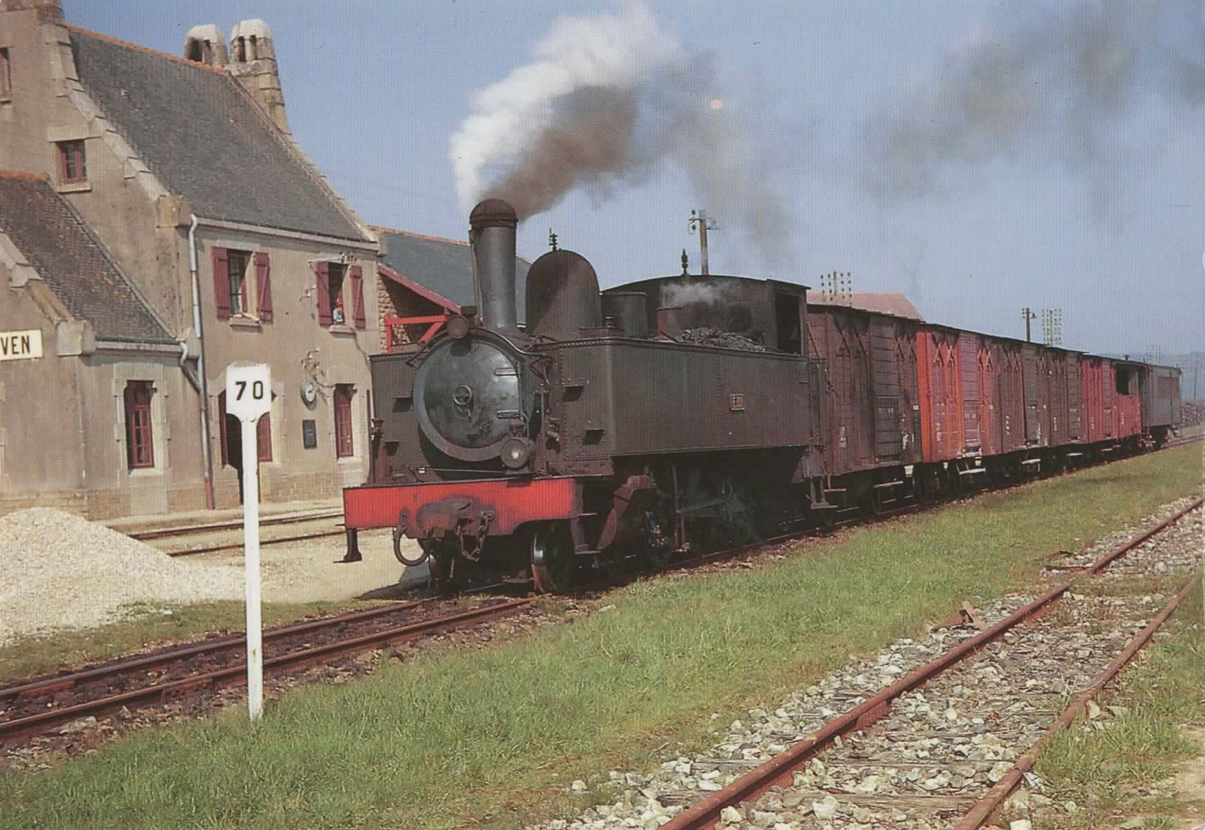 Arrivée d'un train à vapeur en gare de Plomodiern-Ploéven le 9 avril 1964. Photo ancienne (collection privée)Immatriculation