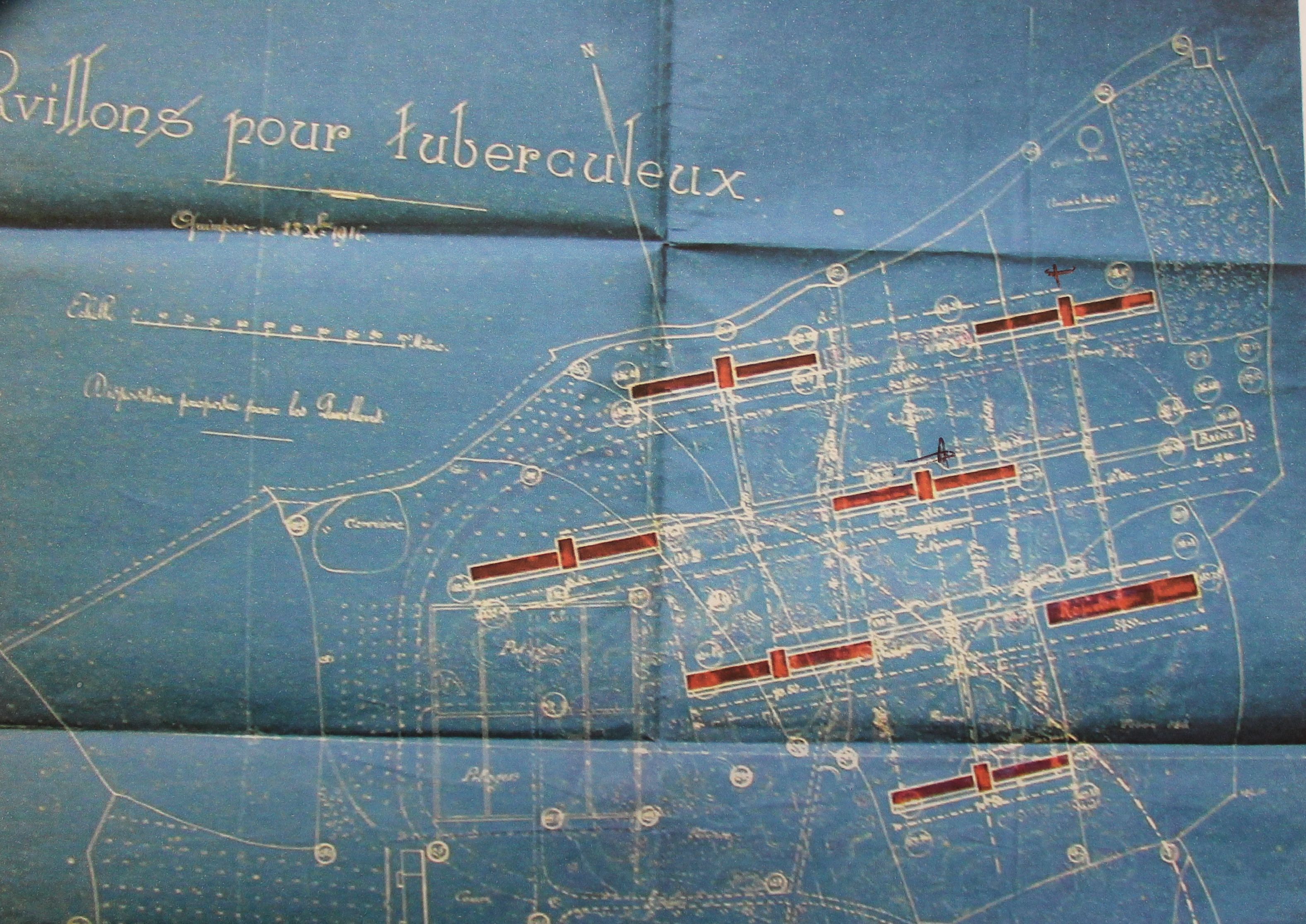 Plougonven, implantation des pavillons, dessin de A. Vally, 1916 (A.D. 29, 4N 75-76)Immatriculation
