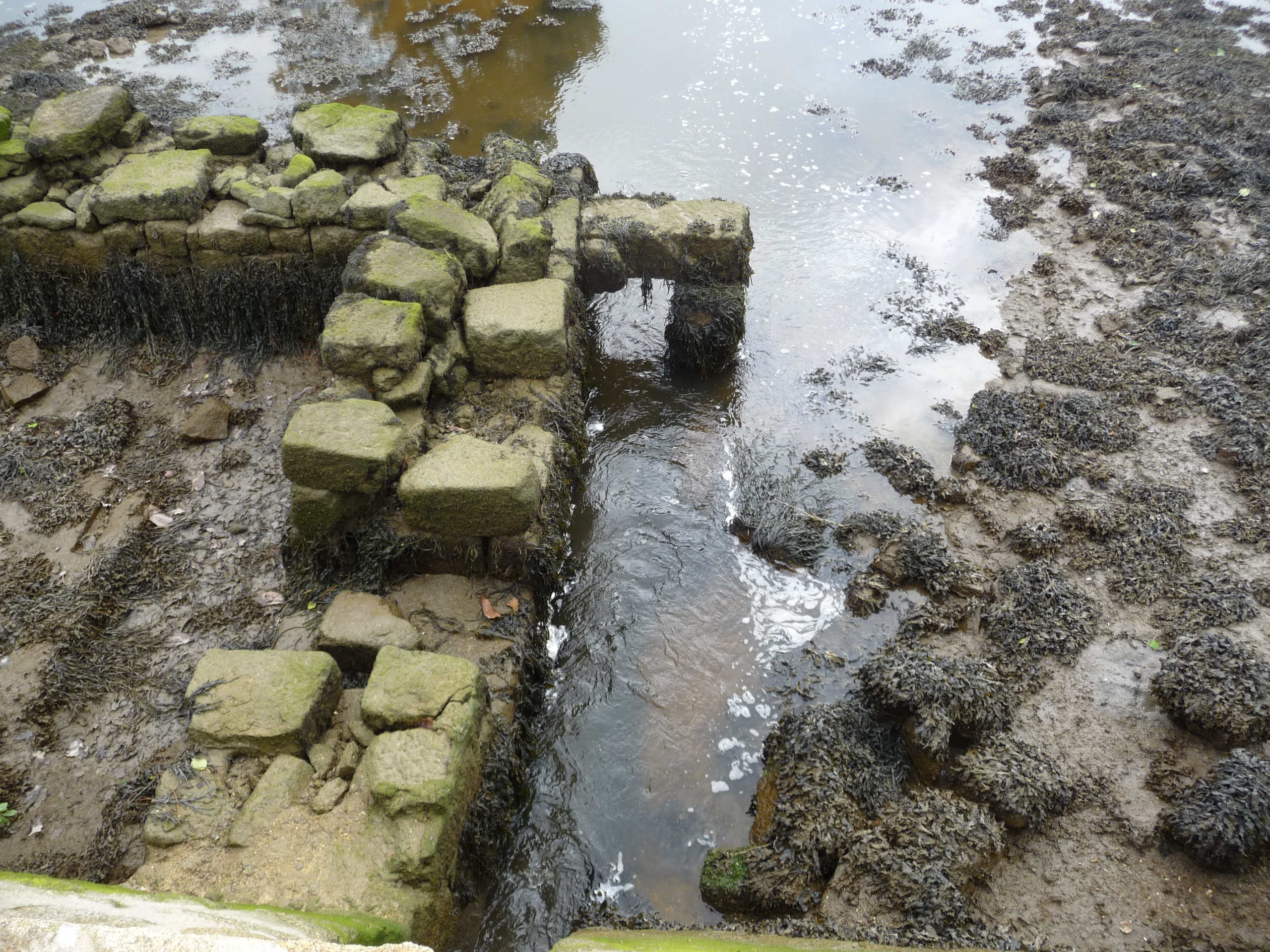 Vestige de l'arc boutant empêchant l'enfoncement du bâtiment dans la vase. Il est évidé pour laissé passer l'eau du coursier qui se trouve derrière.Immatriculation