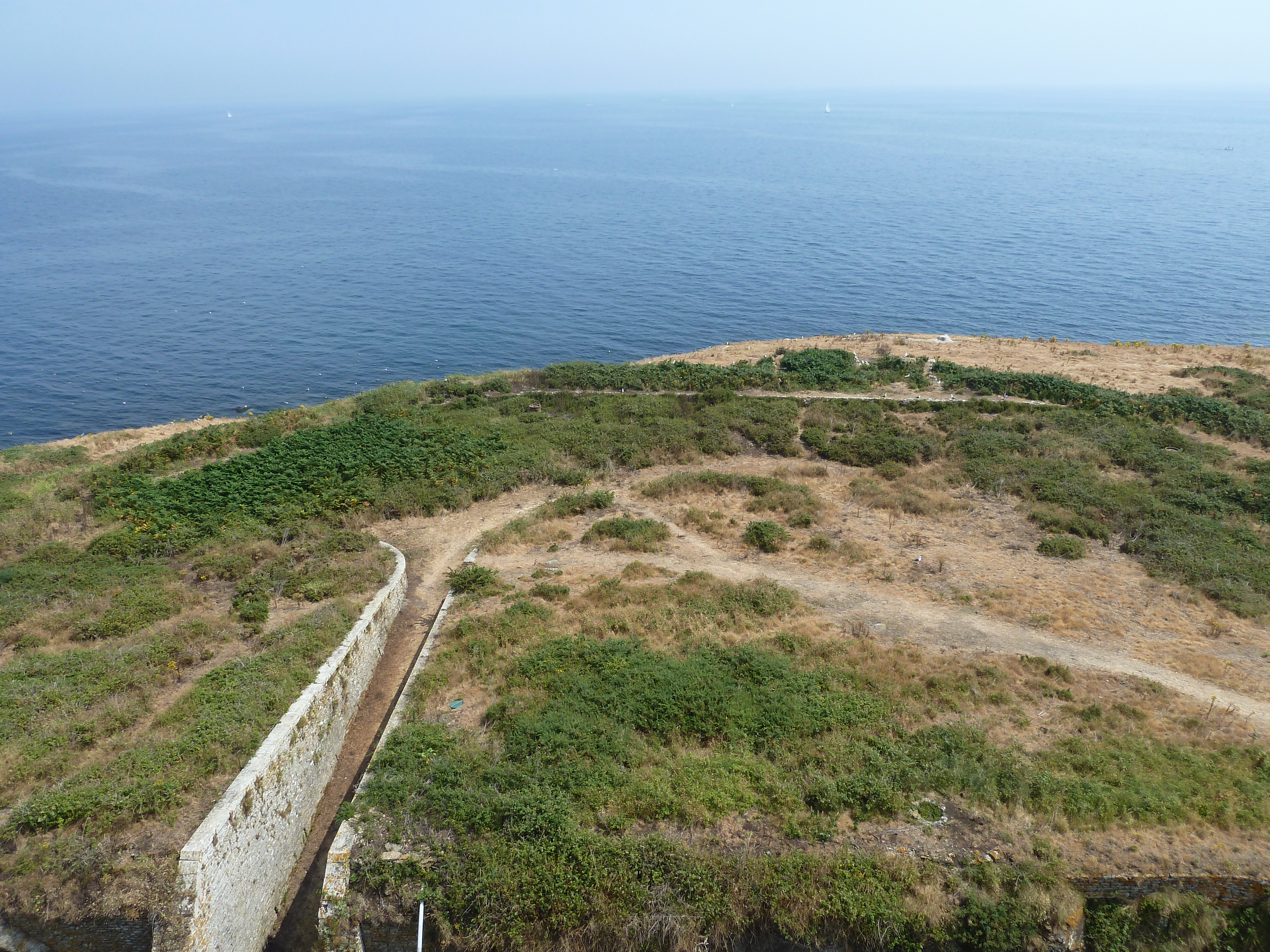 Archipel de Glénan, batterie de Penfret, vue de la batterie depuis le sommet du phare.Immatriculation