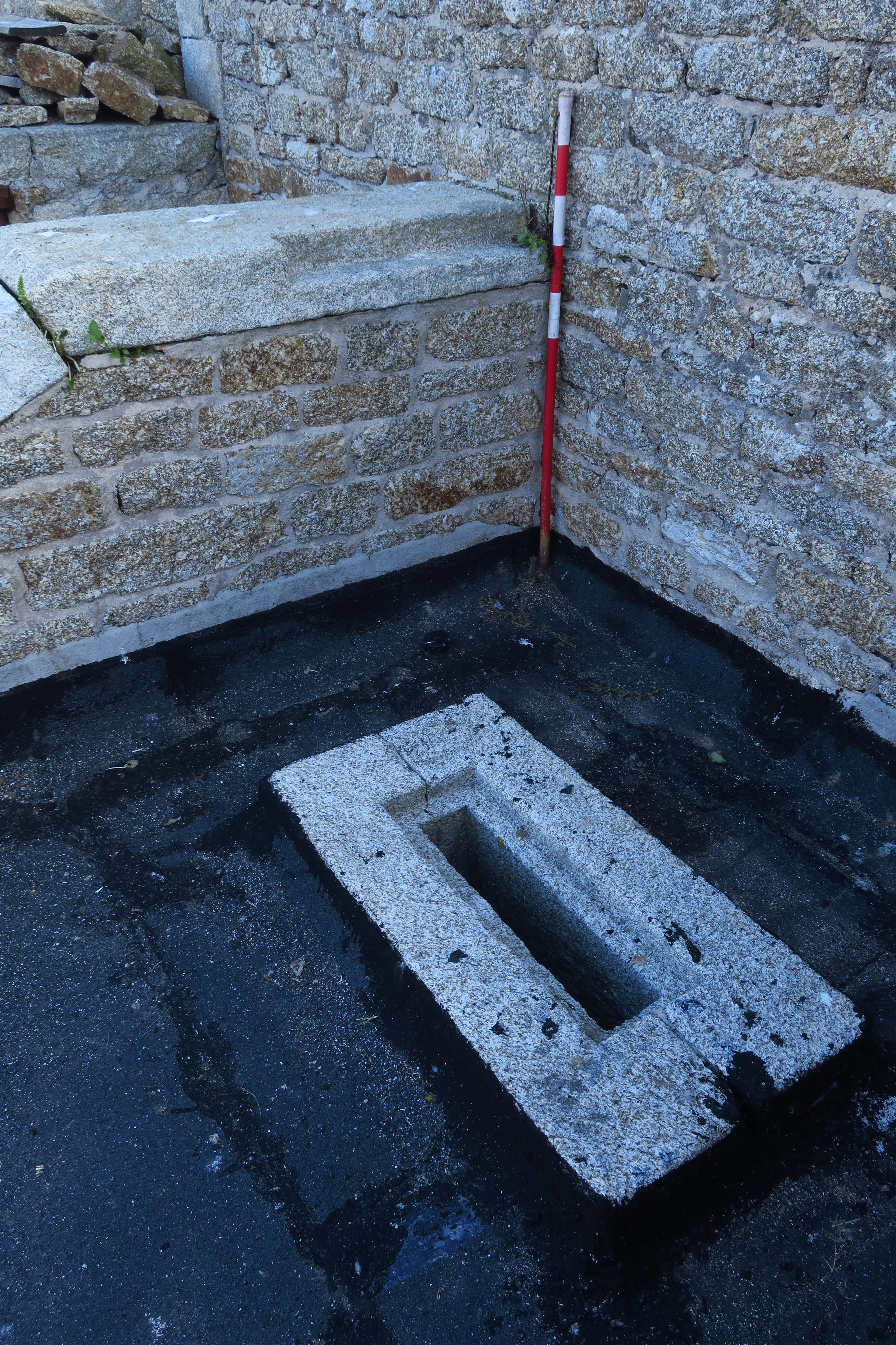 Archipel de Glénan, batterie de Penfret, corps de garde crénelé, créneau de tir au-dessus de l'entrée.Immatriculation