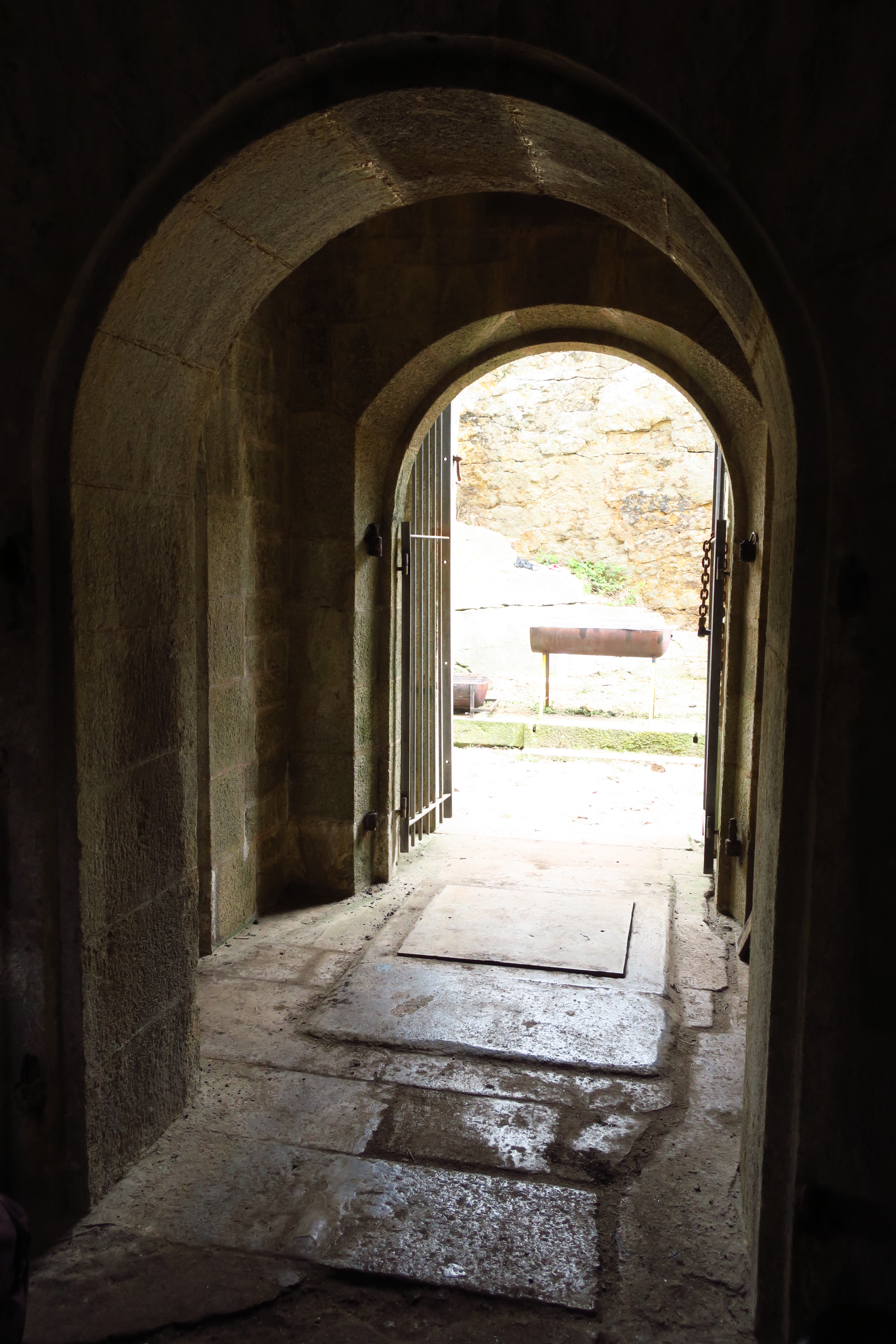 Archipel de Glénan, batterie de Penfret, corps de garde crénelé, porte et regard de la citerne.Immatriculation