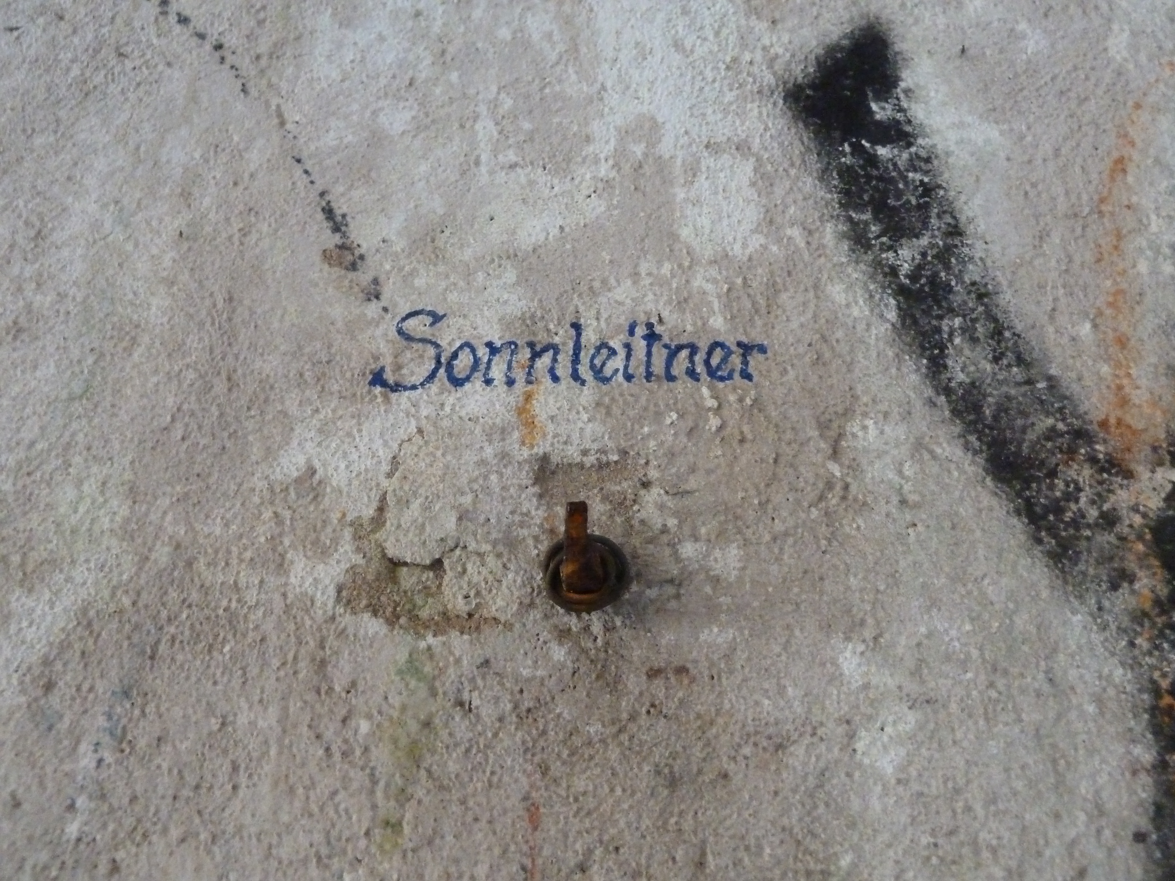 Archipel de Glénan, batterie de Penfret, corps de garde crénelé, détail d'une inscription allemande.Immatriculation
