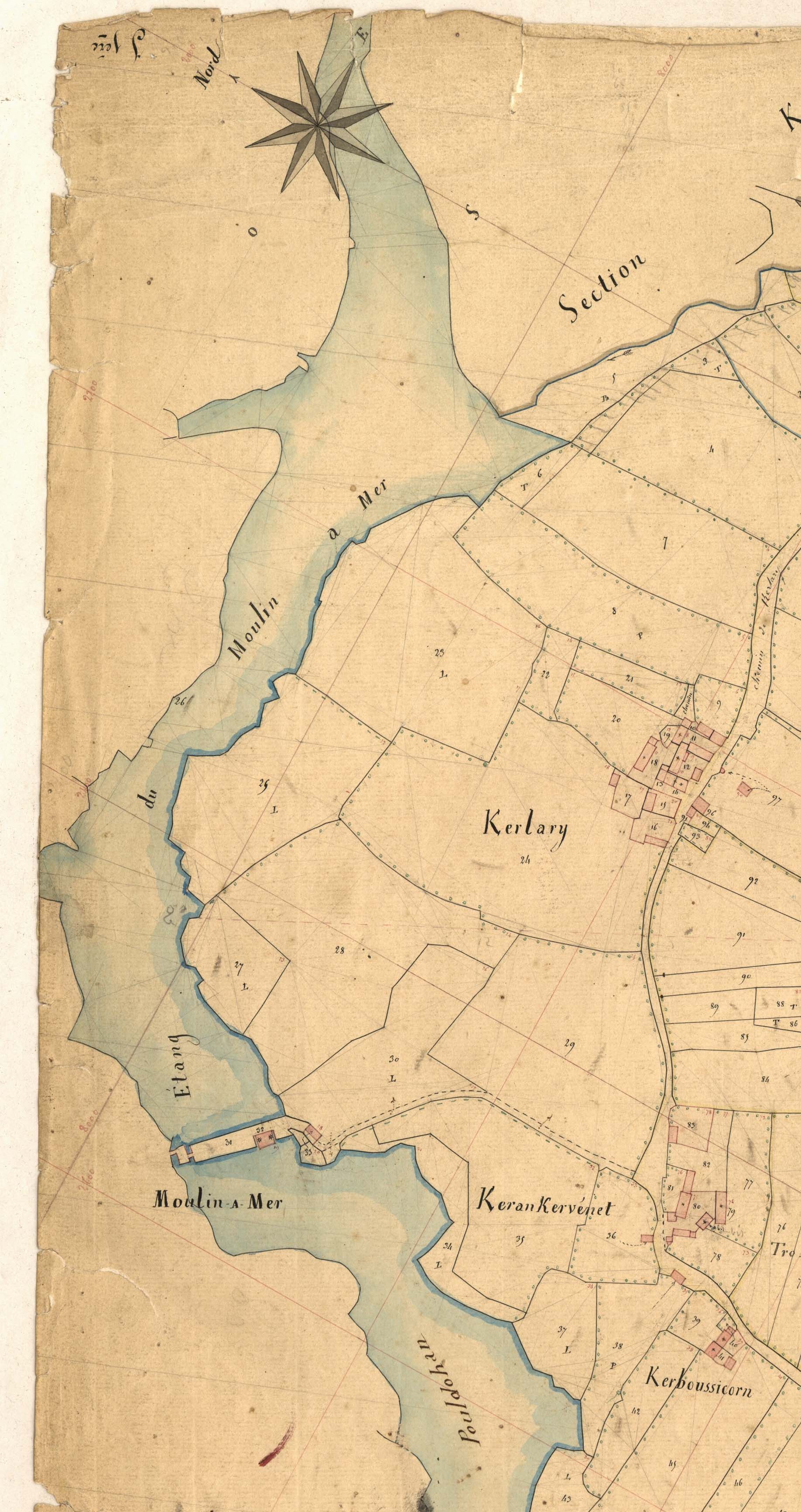 Cadastre de 1845, Le moulin mer et son étang, SECTION J 1 DE POULDOHAN. (3 P 295/2/63)Immatriculation