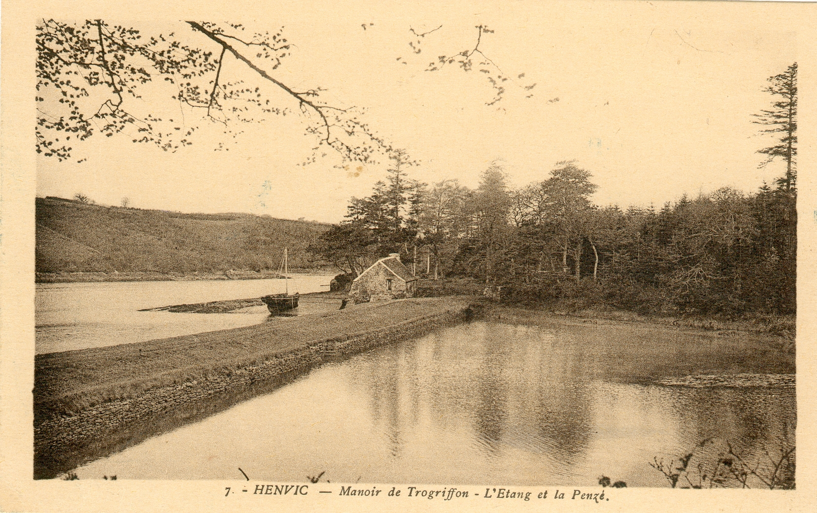 Ancienne carte postale "Manoir de Trogriffon - L'étang de la Penzé"Immatriculation