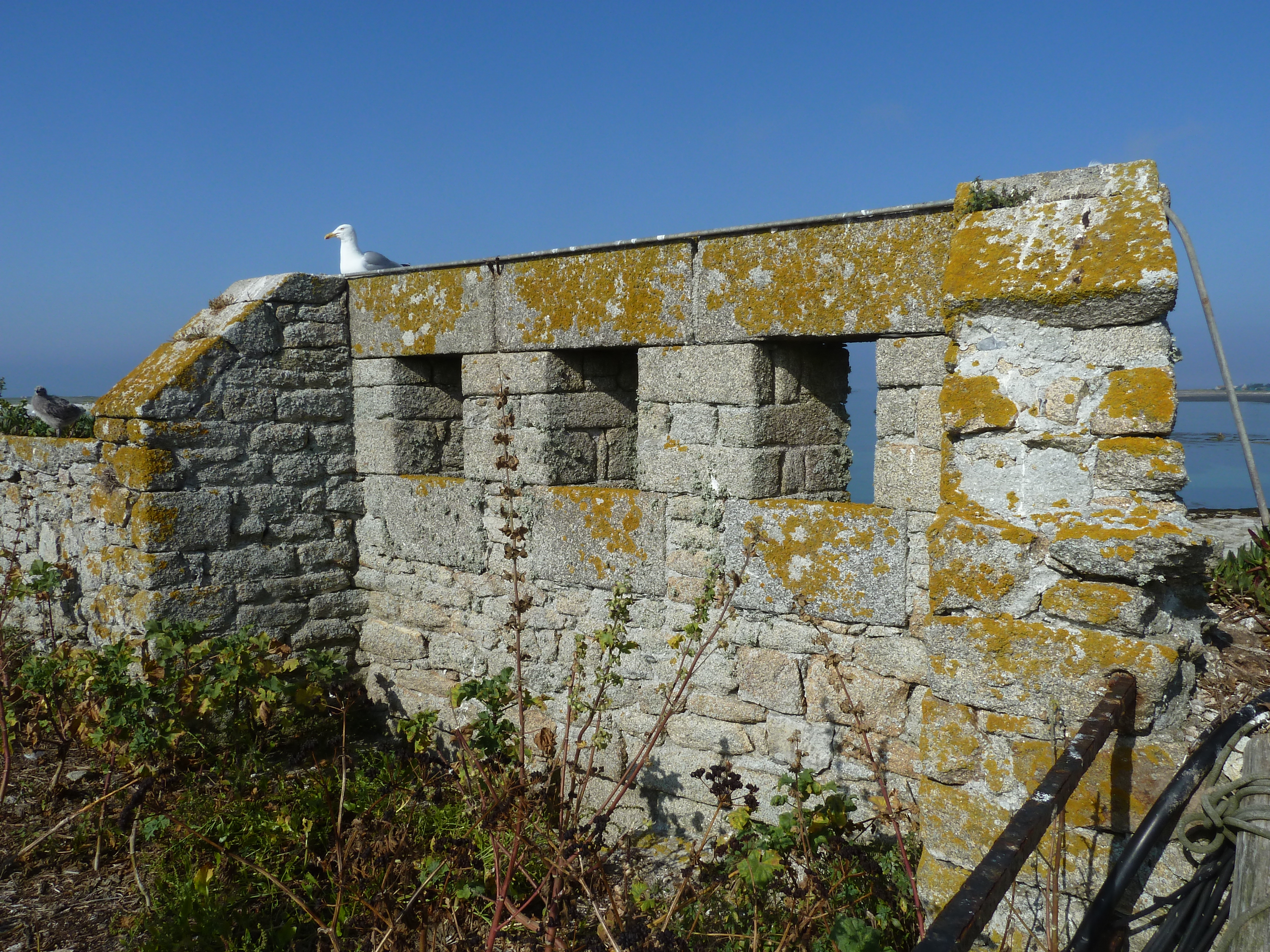 Archipel de Glénan, fort de l'île Cigogne, bretèche surmontant la porte.Immatriculation