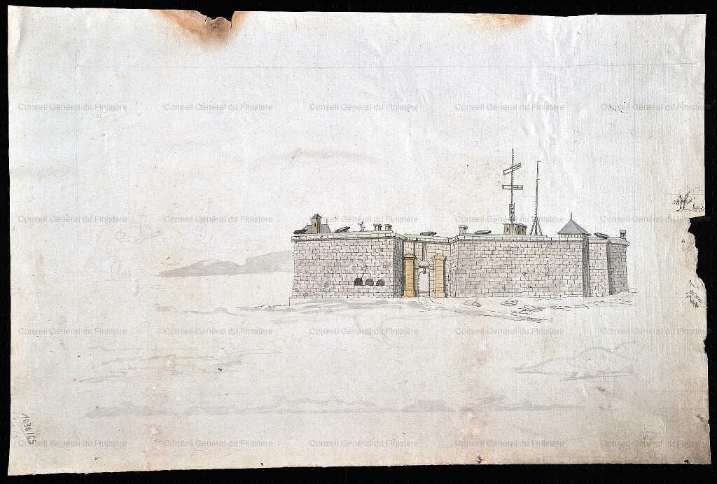 Archives départementales du Finistère. Série J, Archives privées ; Sous-série 49 J, Fonds de Silguy : 49 J 1030-65, Le Fort Cigogne aux Glénan, mai 1806.