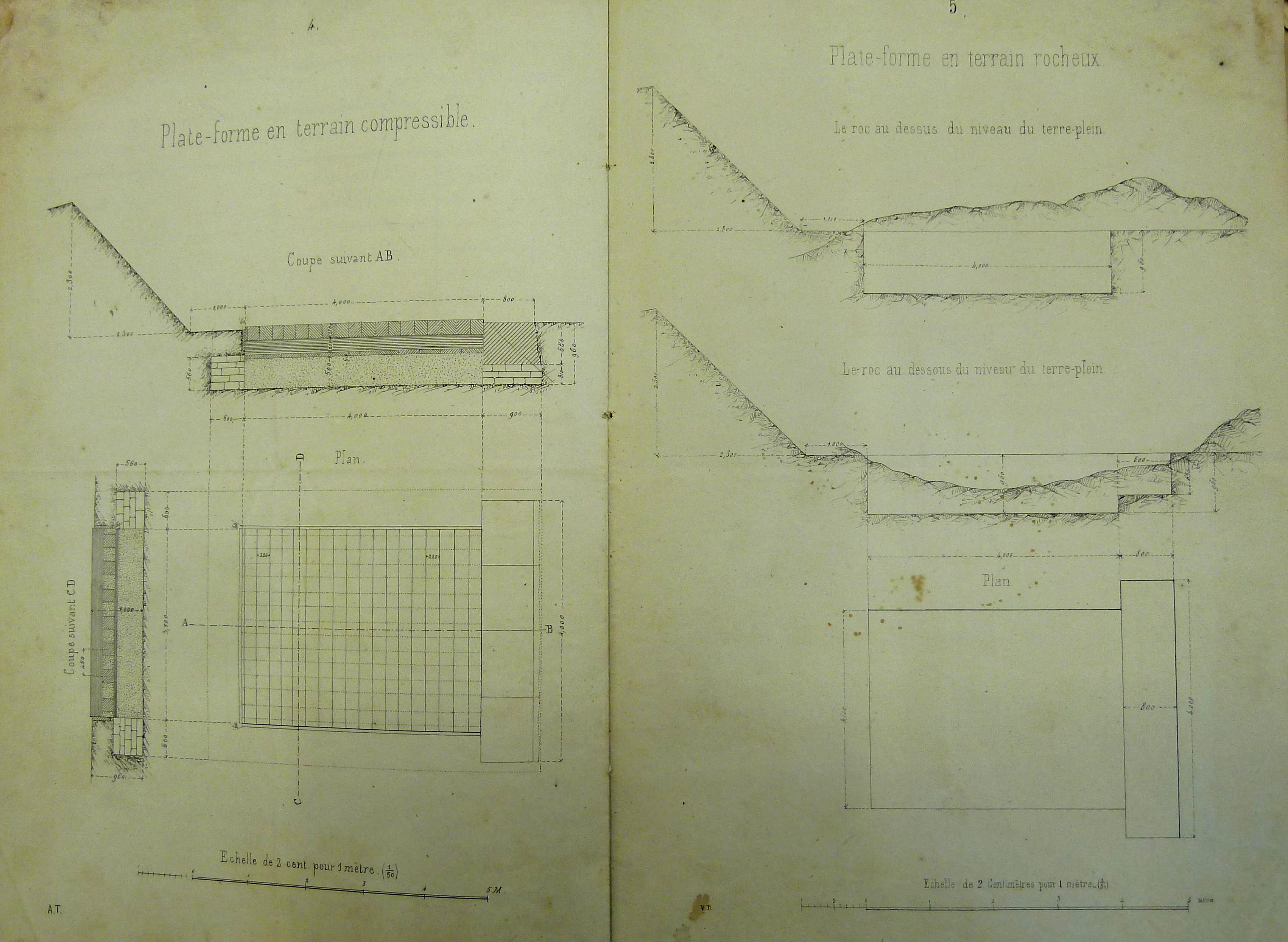 Service historique de la Défense, Département Marine, Lorient. Archives de la Place et du Génie de Belle-Île-en-Mer ; Sous-série 4 S2, archives du Génie de Belle-Île-en-Mer : 4 S2 10, Ministère de la Guerre, Comité de l'Artillerie, Instruction pour la construction de la plate-forme de l'affût de mortier à plaque de 32c, 26 août 1862.