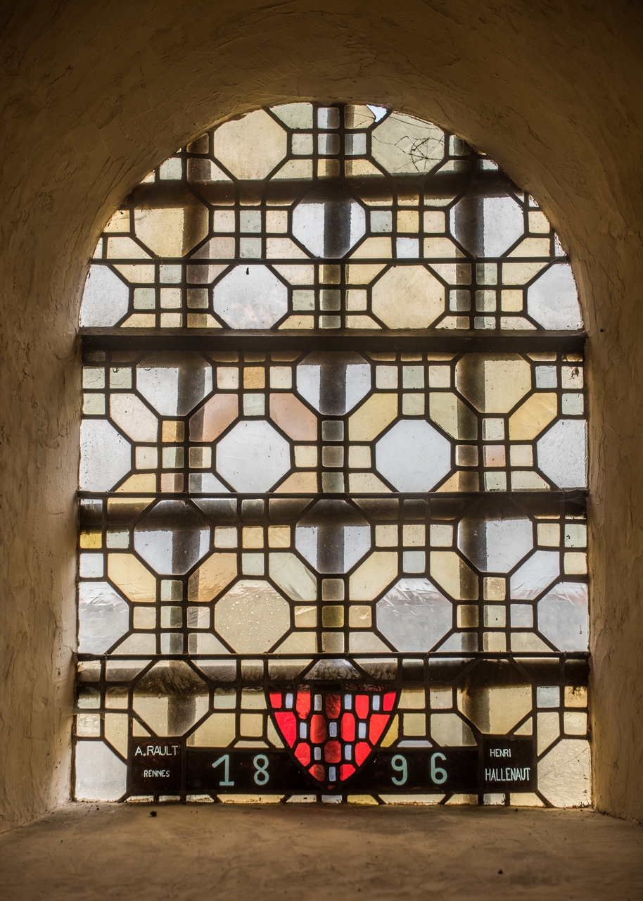 Vue d'un vitrail présent au Nord et daté de 1896Immatriculation
