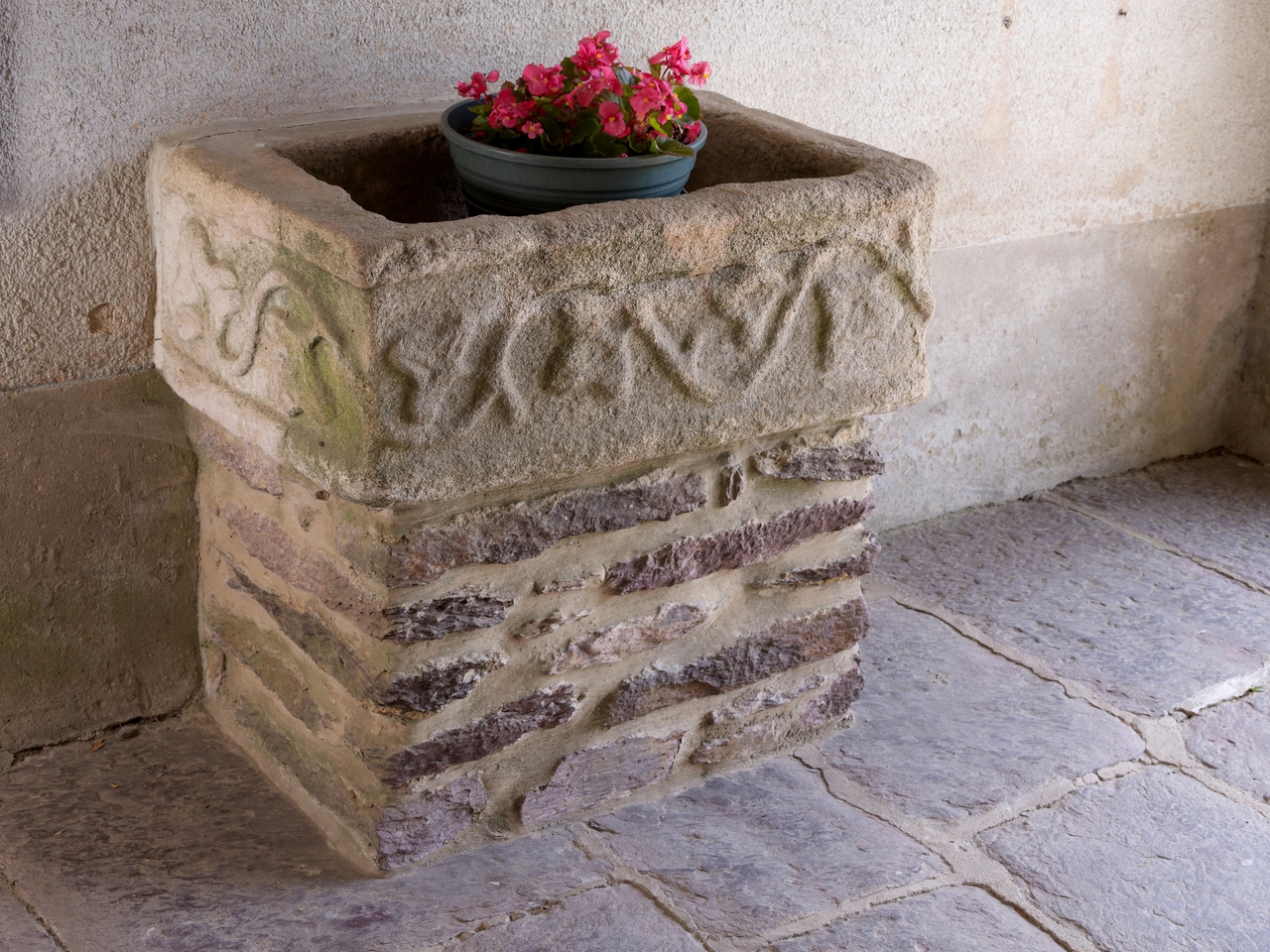 Porche Ouest : bénitier sculptéImmatriculation
