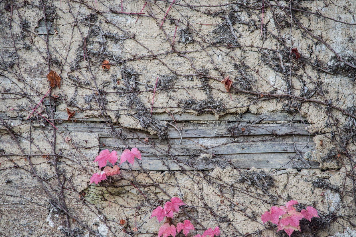 Façade nord du logis. Détail : torchis sur lattisImmatriculation