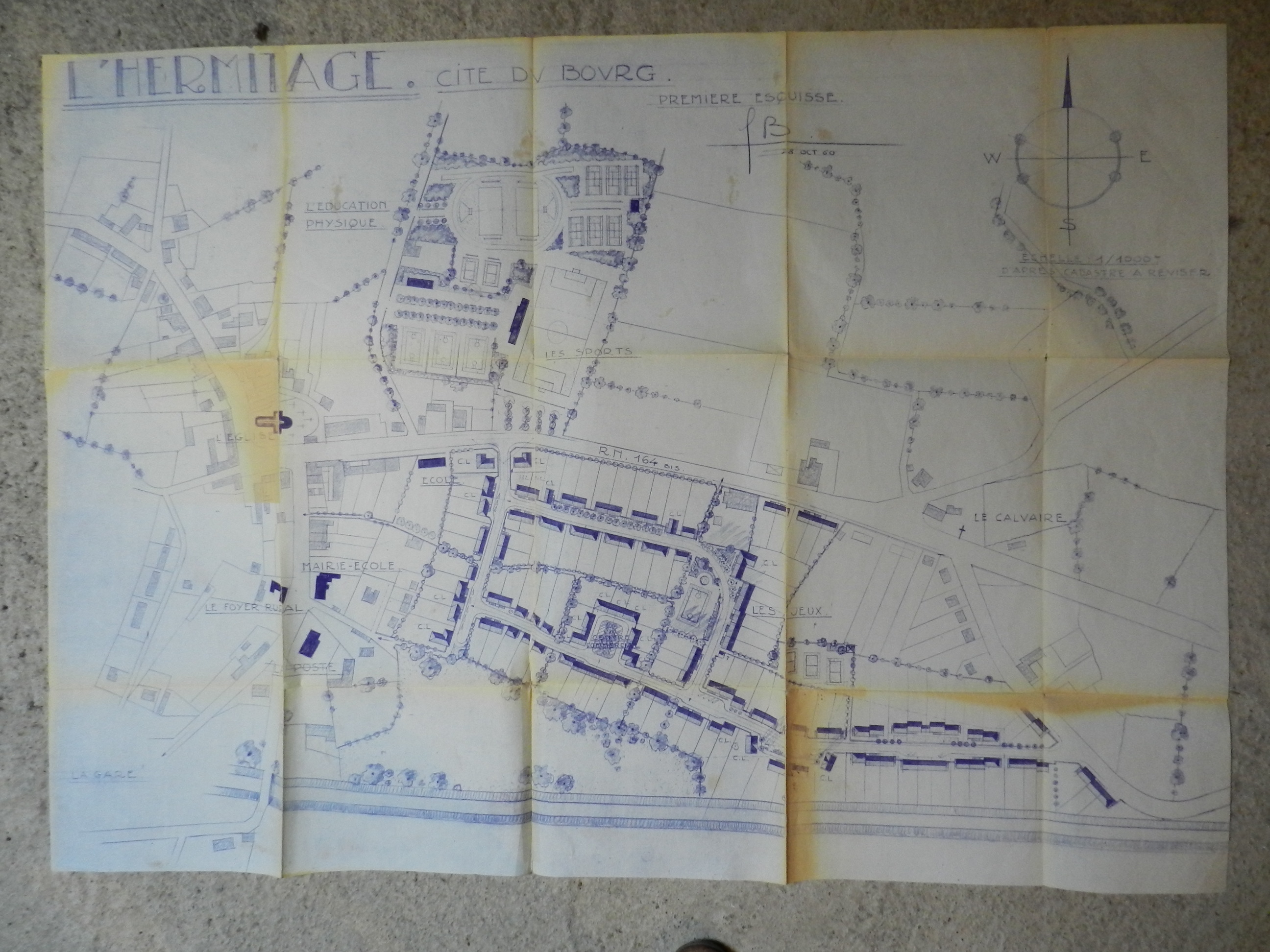 L'Hermitage, cité du Bourg, première esquisse, 28 octobre 1960, Archives municipales de L'Hermitage, 1051.