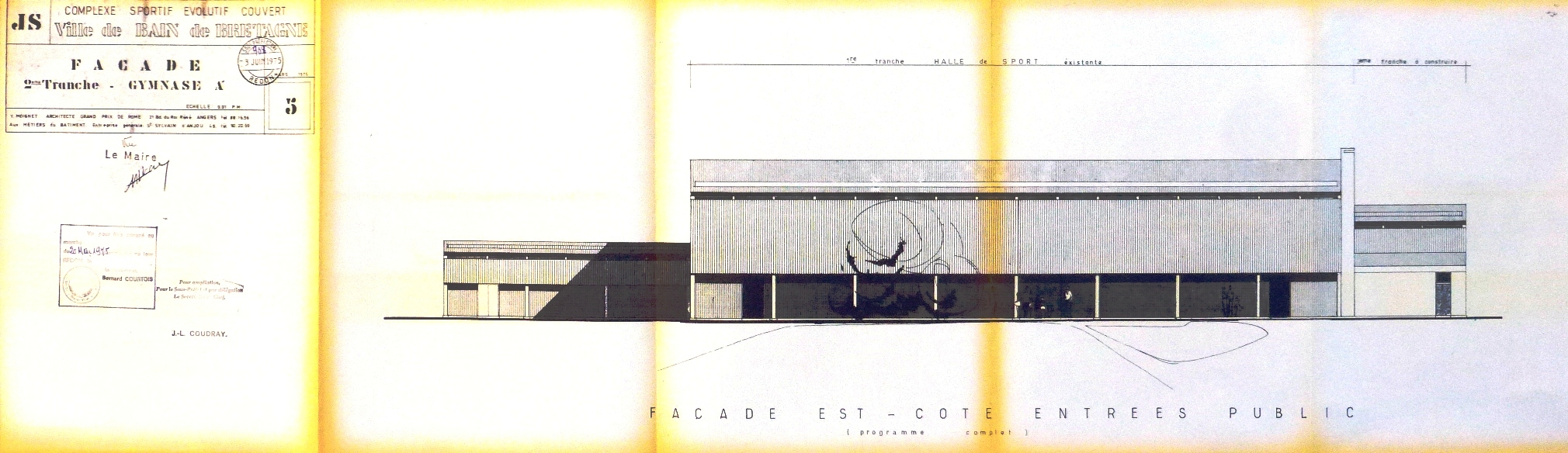 Façade est du COSEC, par Y. Moignet (1975)Immatriculation