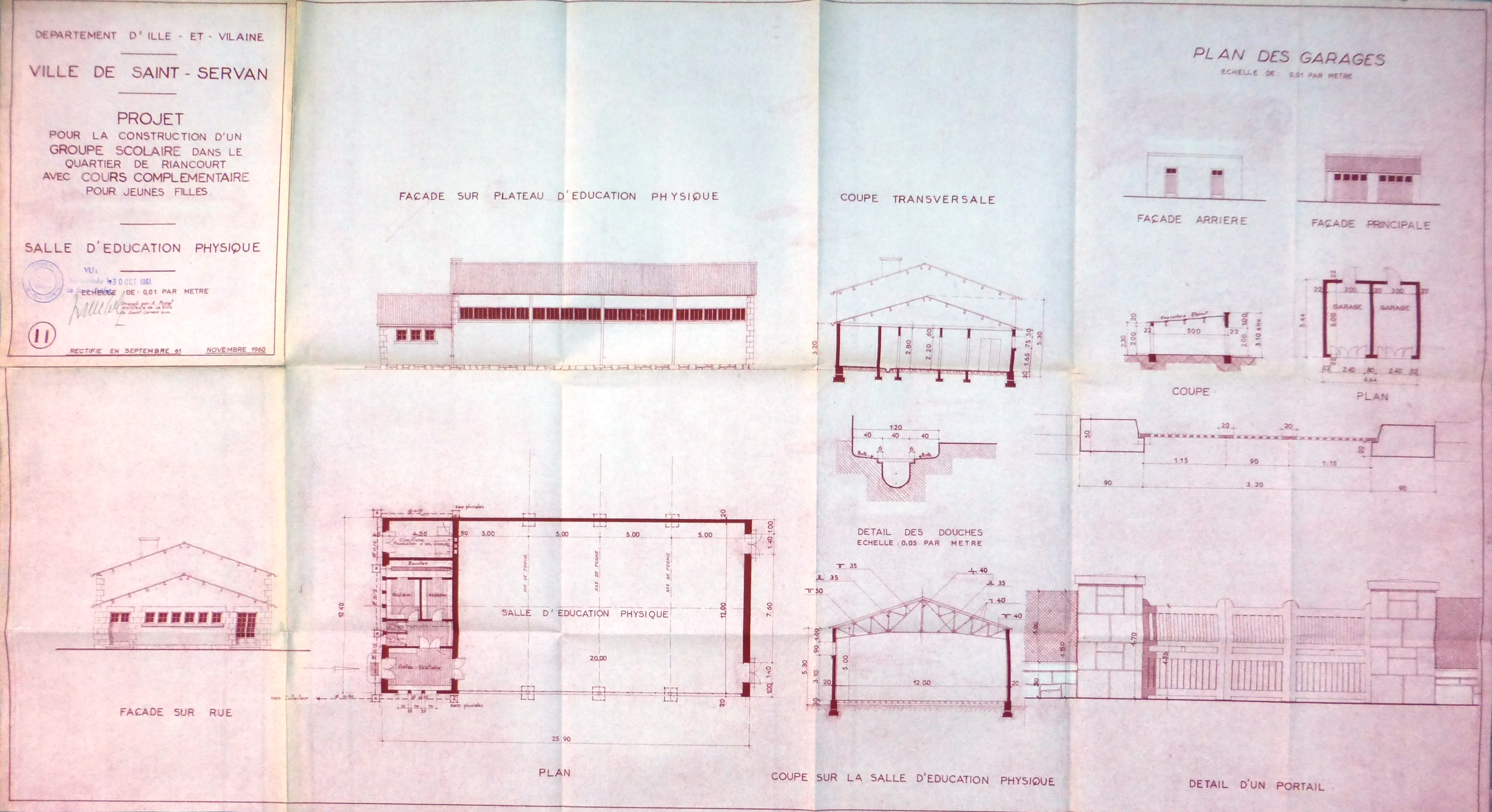 AD Ille-et-Vilaine : 1042 W 252. Plan, façades, coupes. A. Murat, 1961.