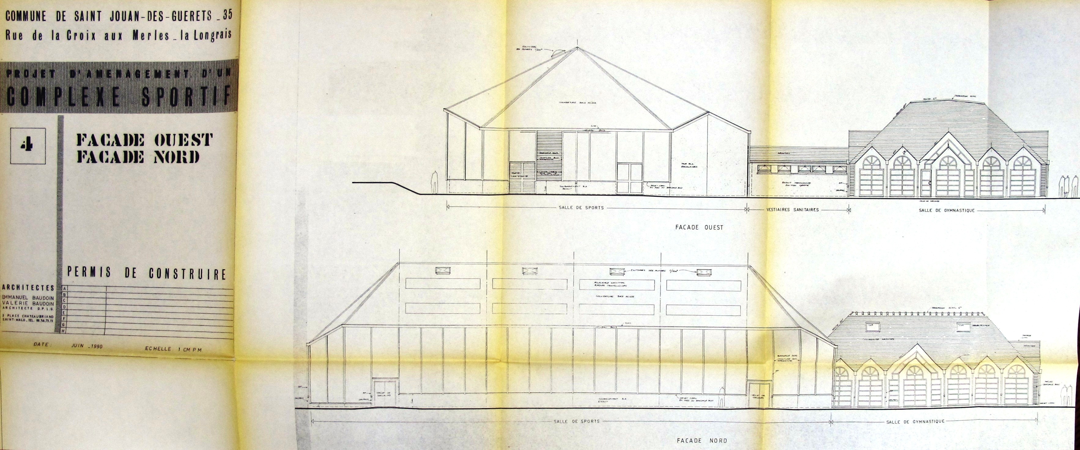 AC Saint-Jouan-des-Guérets : PC n° 35 284 90 60050. Façades ouest et nord. E. et V. Baudoin, 1990.