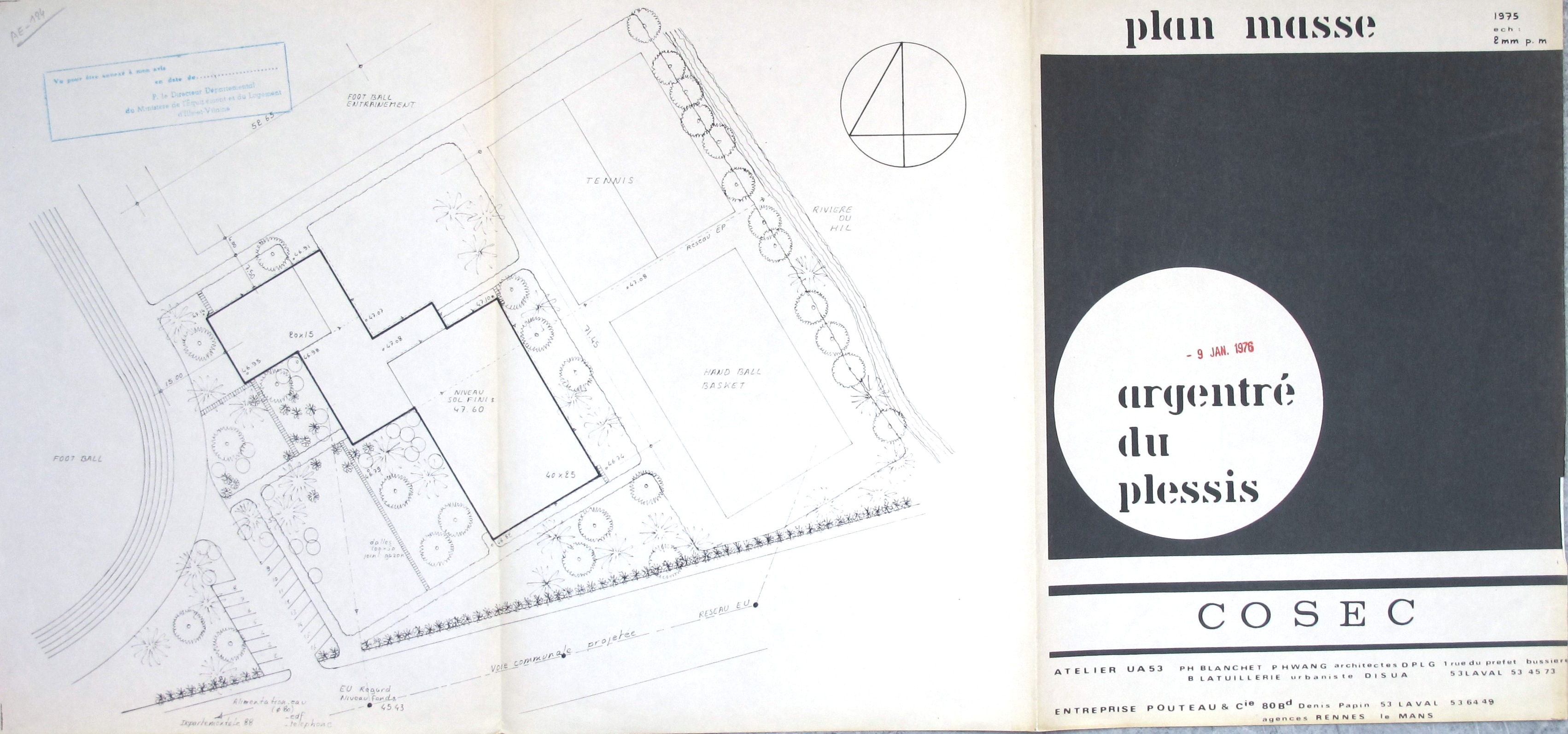 AD Ille-et-Vilaine : 1240 W 59. Plan masse. Ph. Blanchet & P. Hwang, 1975.