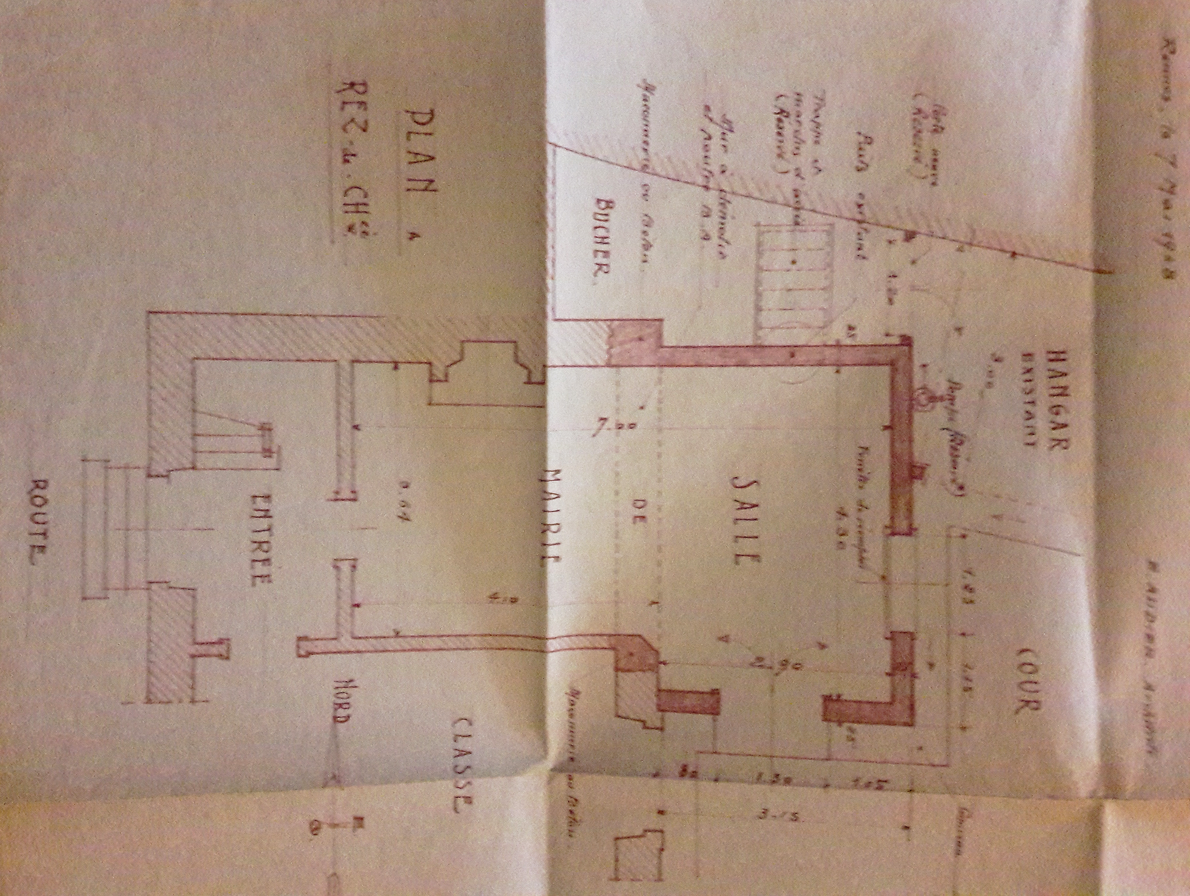 Plan de l'extension de la mairie à l'Ouest du bâtiment, 1948Immatriculation