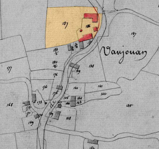 Ancienne ferme du n°2 Vaujouan sur le cadastre napoléonien de 1829Immatriculation