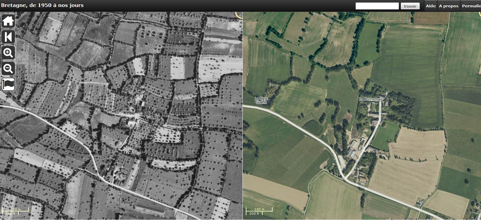 Ecart de la Bonnemais, vue aérienne des années 1950 (GeoBretagne)Immatriculation