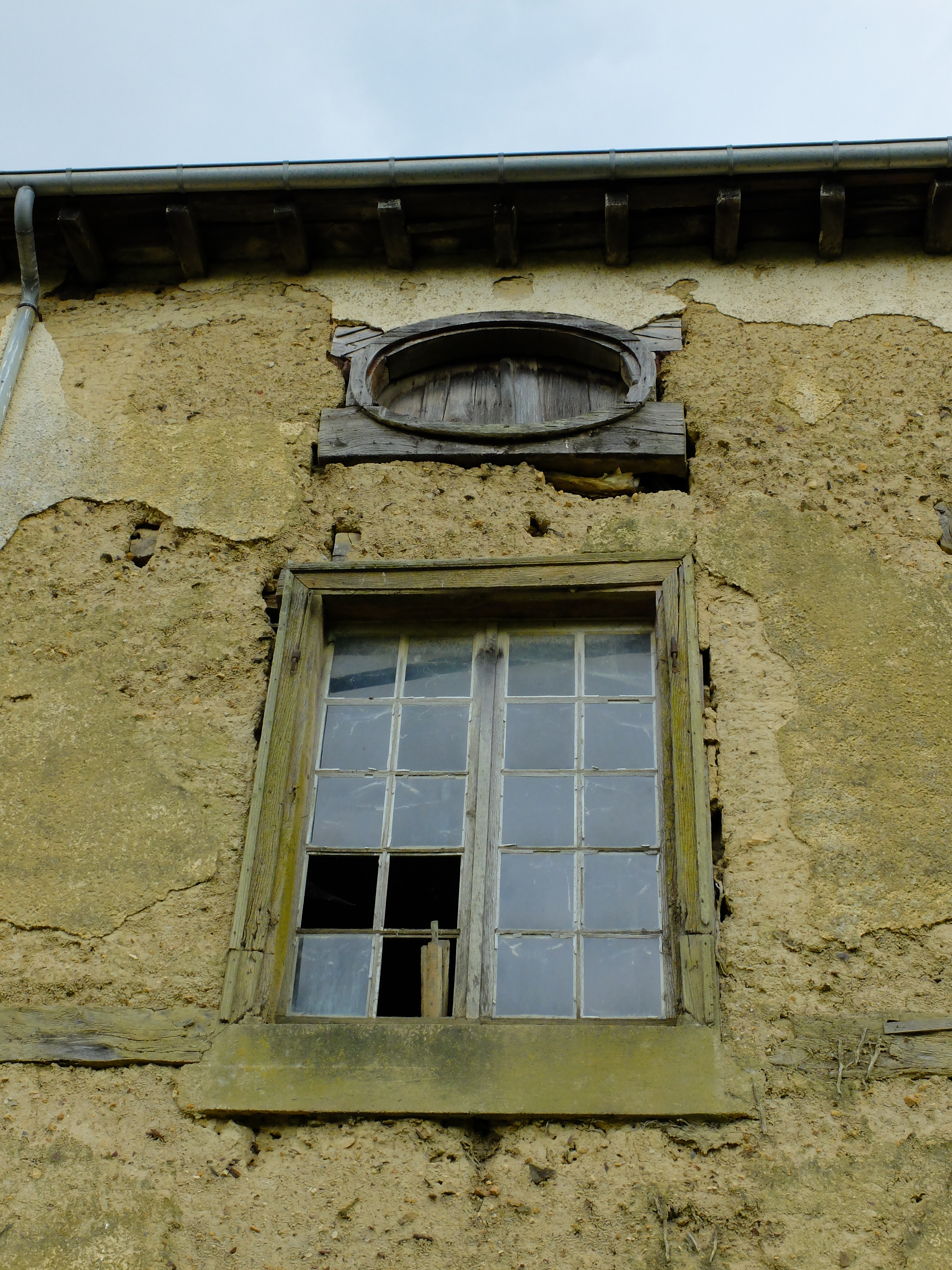 Vue en détail ouverture et oeil-de-boeuf, façade sudImmatriculation