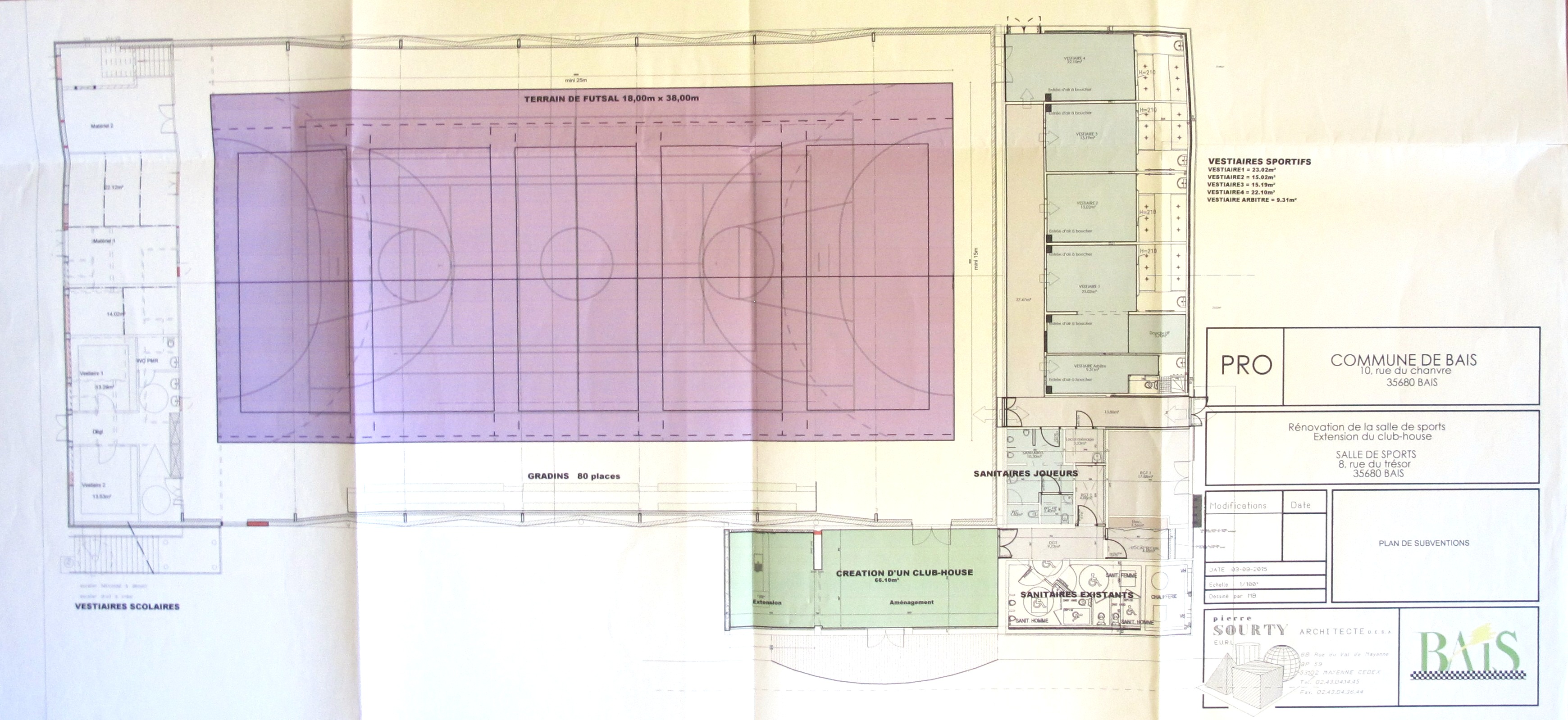 AC Bais : 1 M. Rénovation de la salle de sports. P. Sourty, 2015.