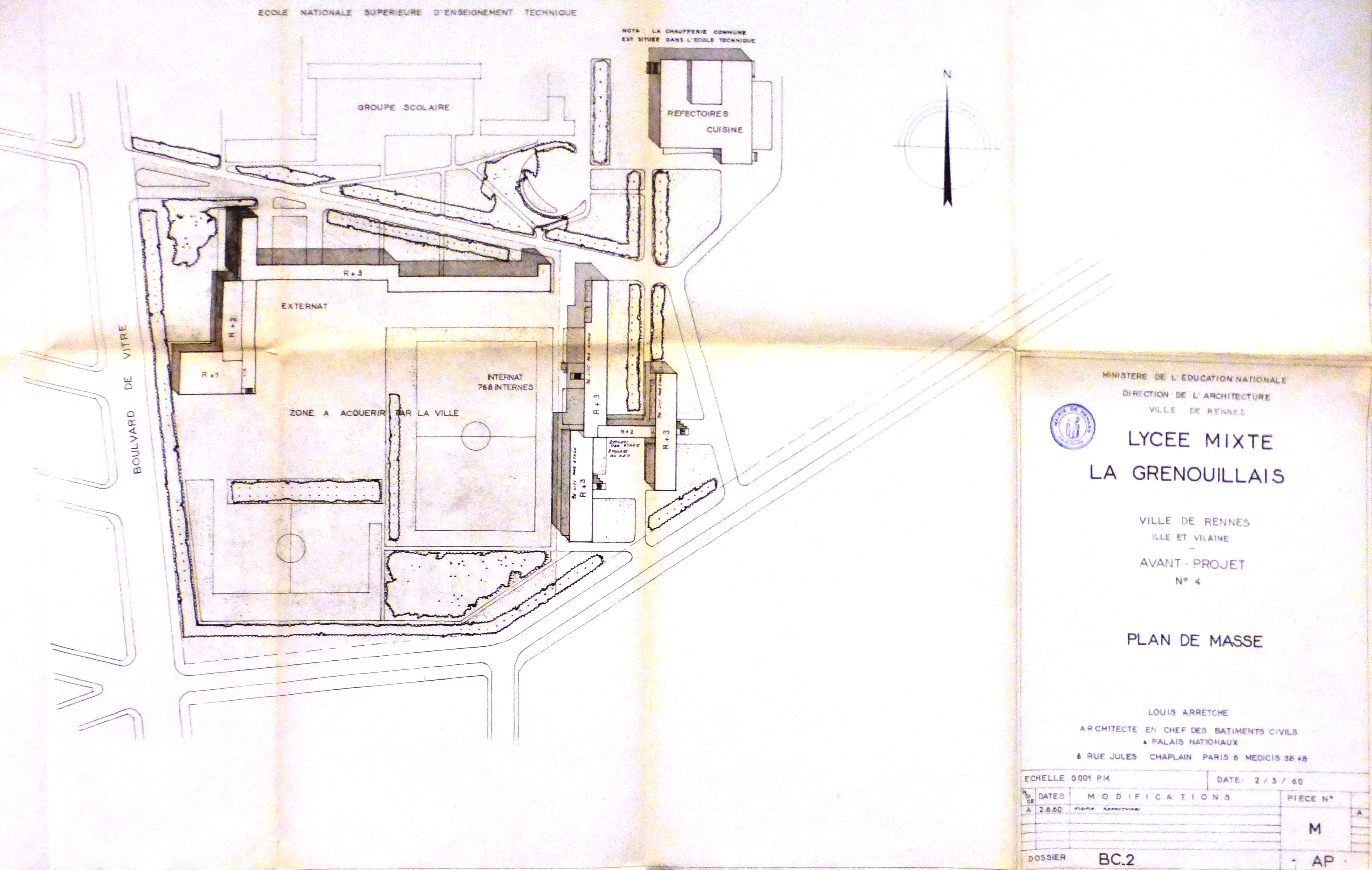 AC Rennes : 646 W 64. Plan de masse. L. Arretche, 1960.