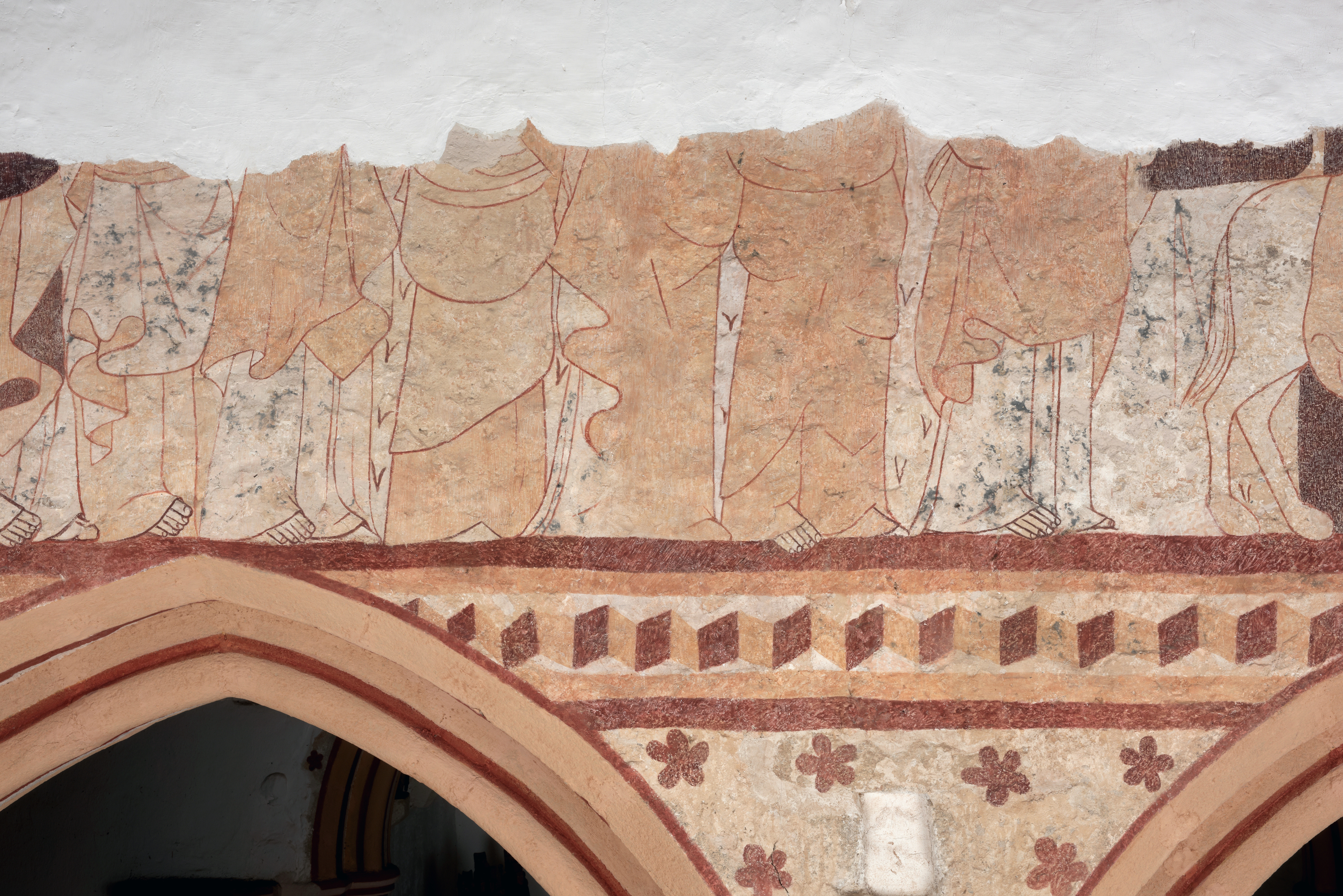 Après restauration des peintures murales en 2015. Bras nord , détail de l'entrée de Jésus dans JérusalemImmatriculation
