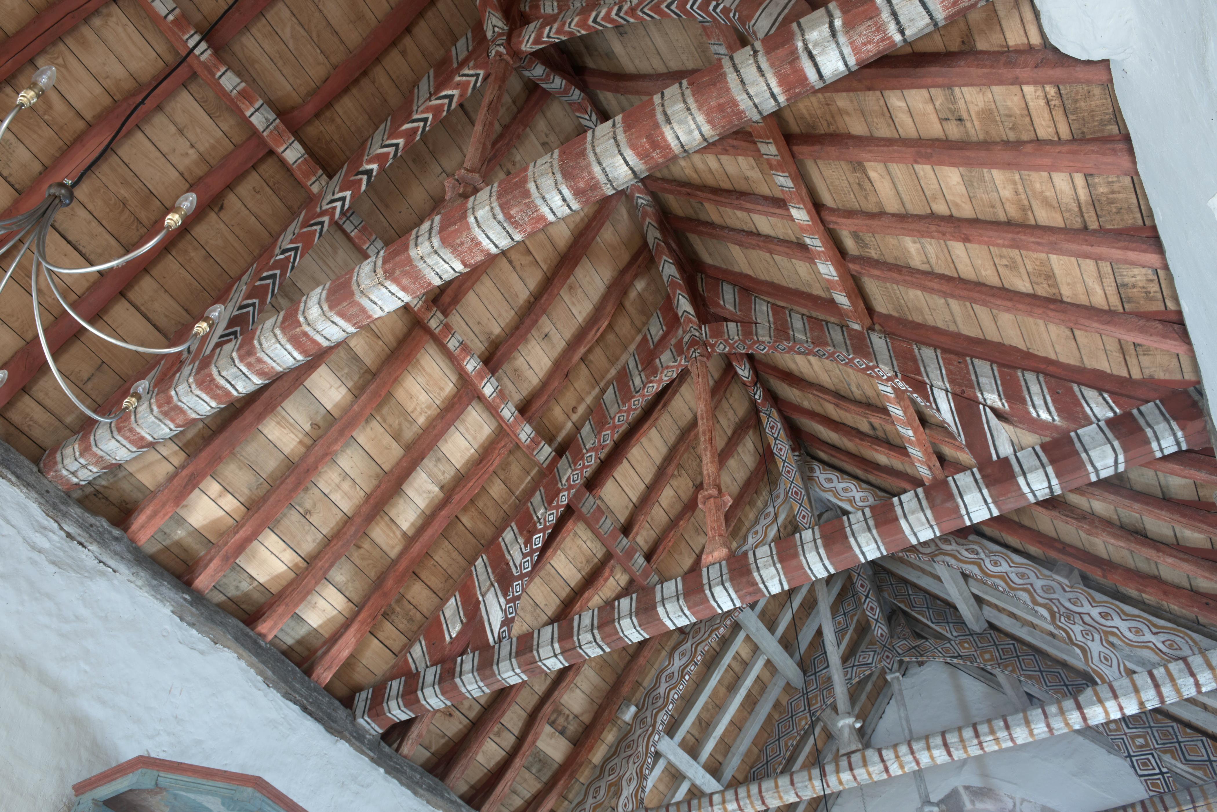 Vue de la charpente du choeur avec sa polychromie restauréeImmatriculation