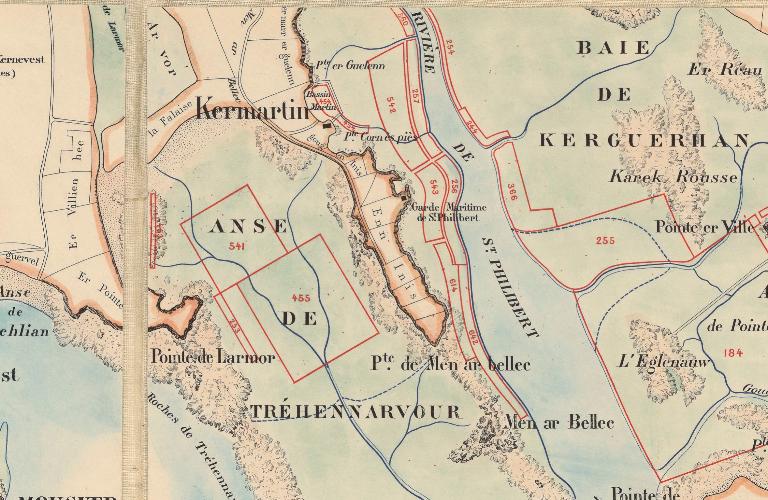 RAGIOT D., Carte des côtes du quartier maritime d'Auray, dressée pour le service ostréicole, [Document cartographique] / par ordre de Mr. le Ministre de la Marine ; Gravé par F. Dufour ; Paris : Lemercier et Cie., 1880Immatriculation