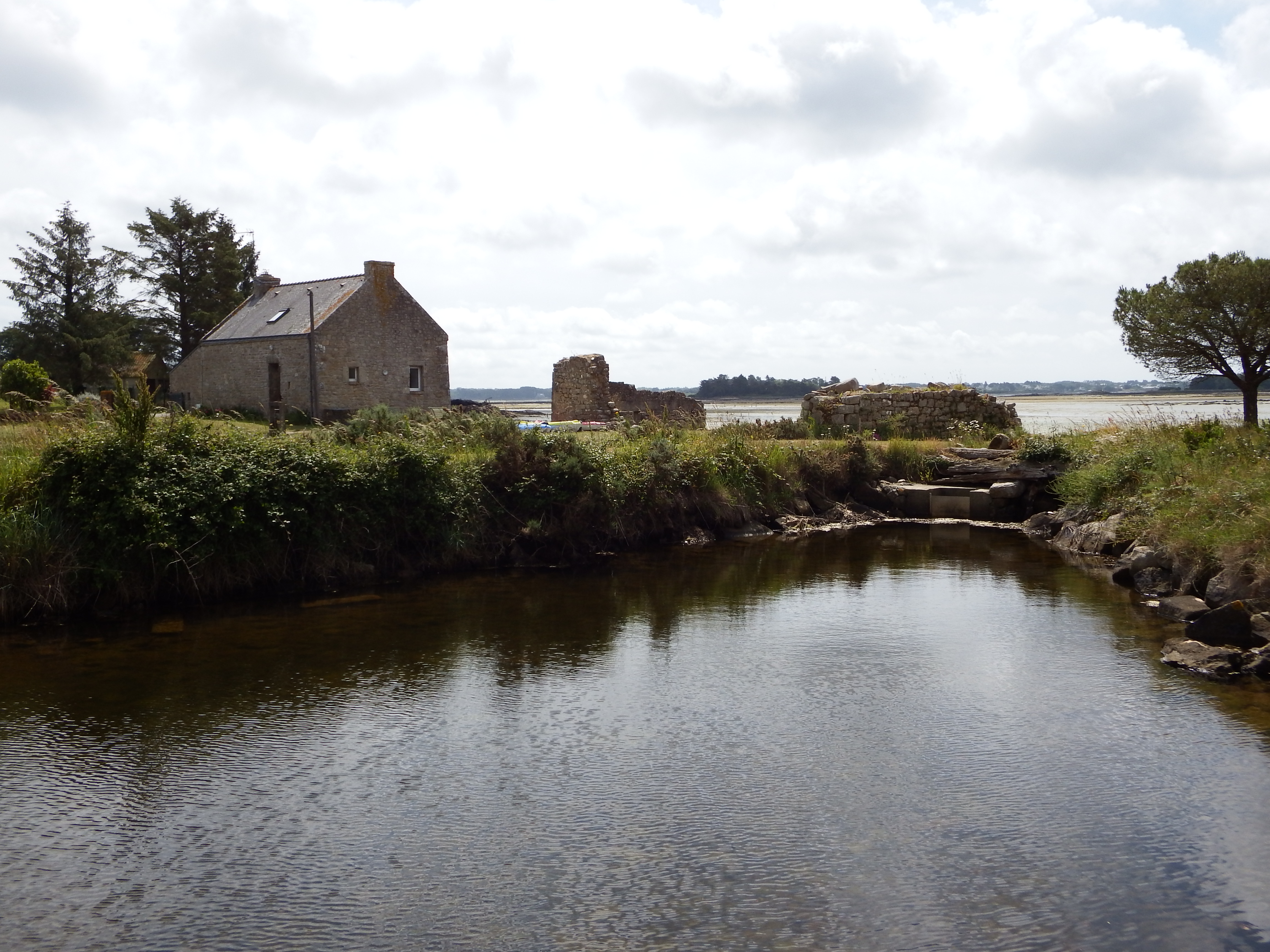 Vue depuis l'étang du coursier alimentant la meule du millet, vue de la maison du meunier sur la gaucheImmatriculation