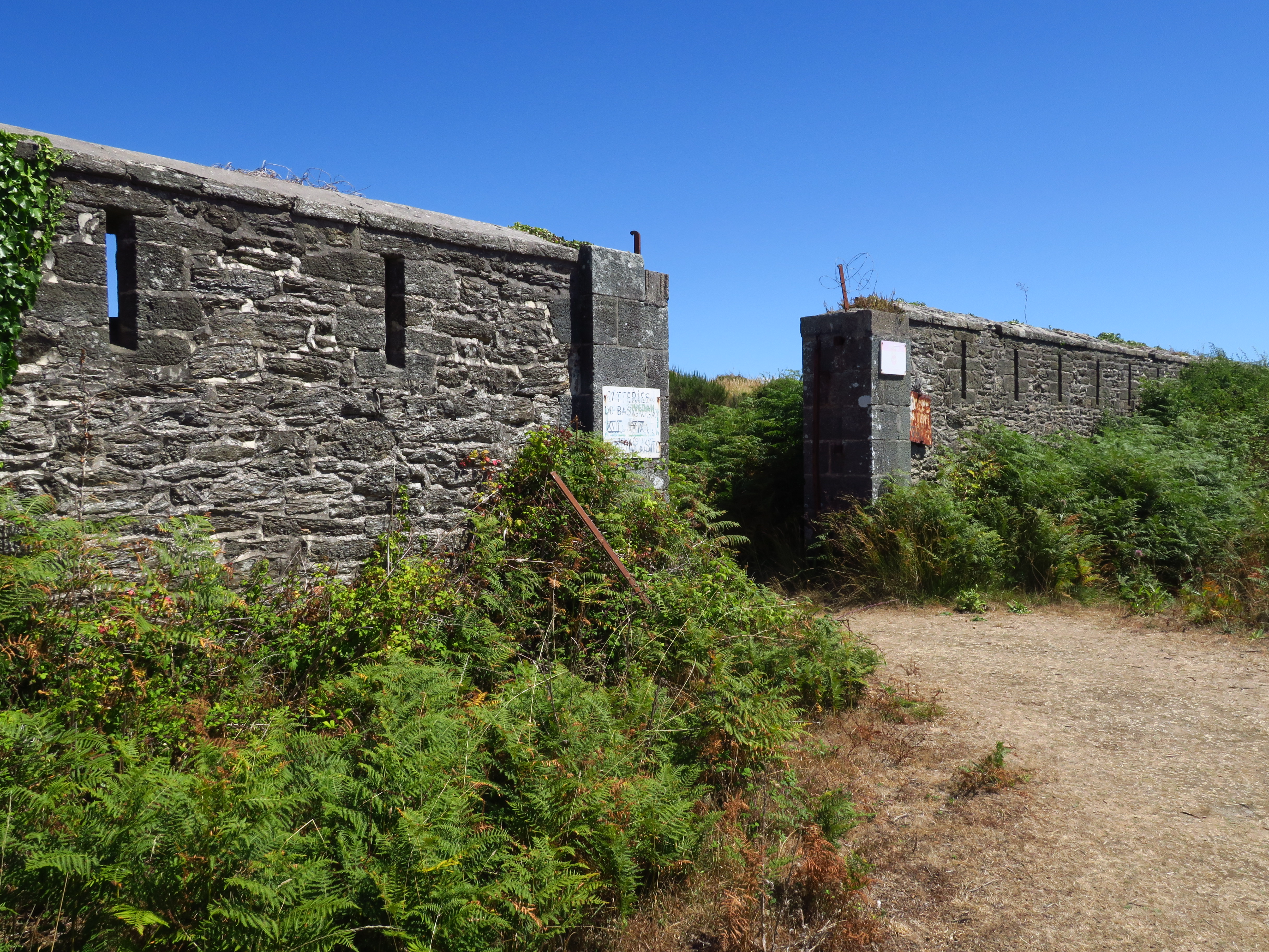 Groix, batterie du Bas-Grognon, porte et mur crénelé.Immatriculation
