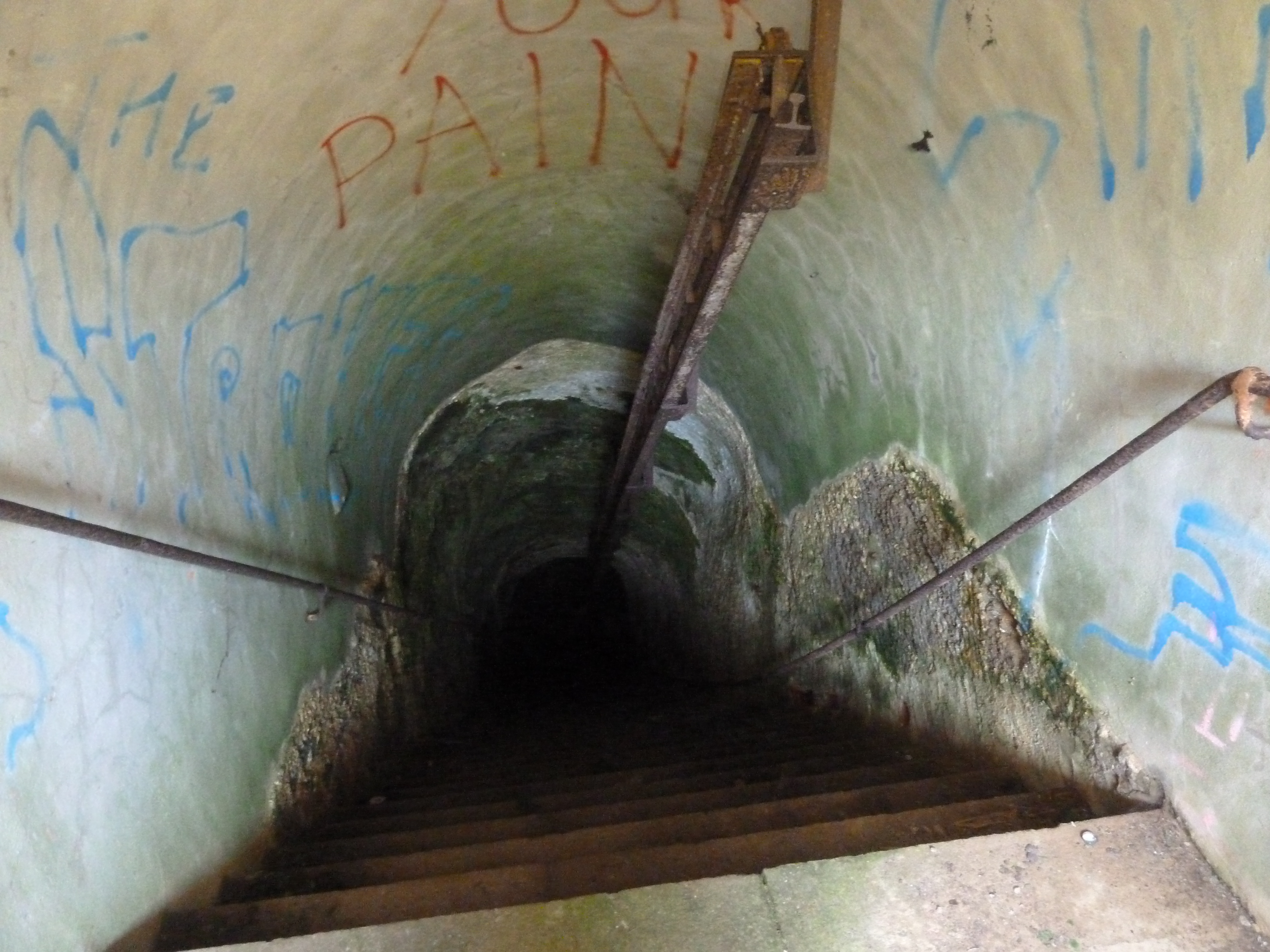 Groix, batterie du Bas-Grognon, escalier du magasin à poudre souterrain.Immatriculation
