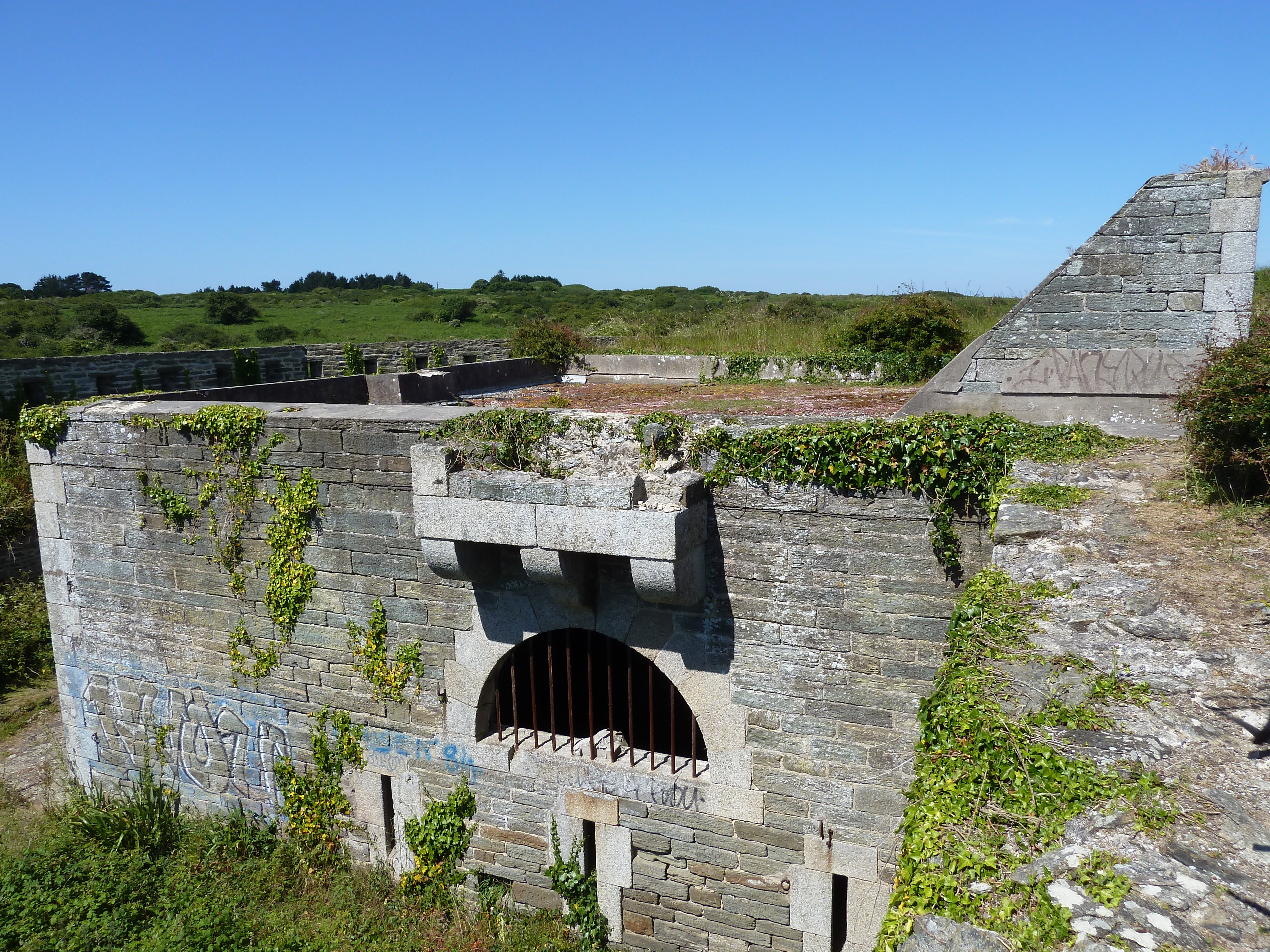 Groix, batterie du Bas-Grognon, corps de garde crénelé.Immatriculation