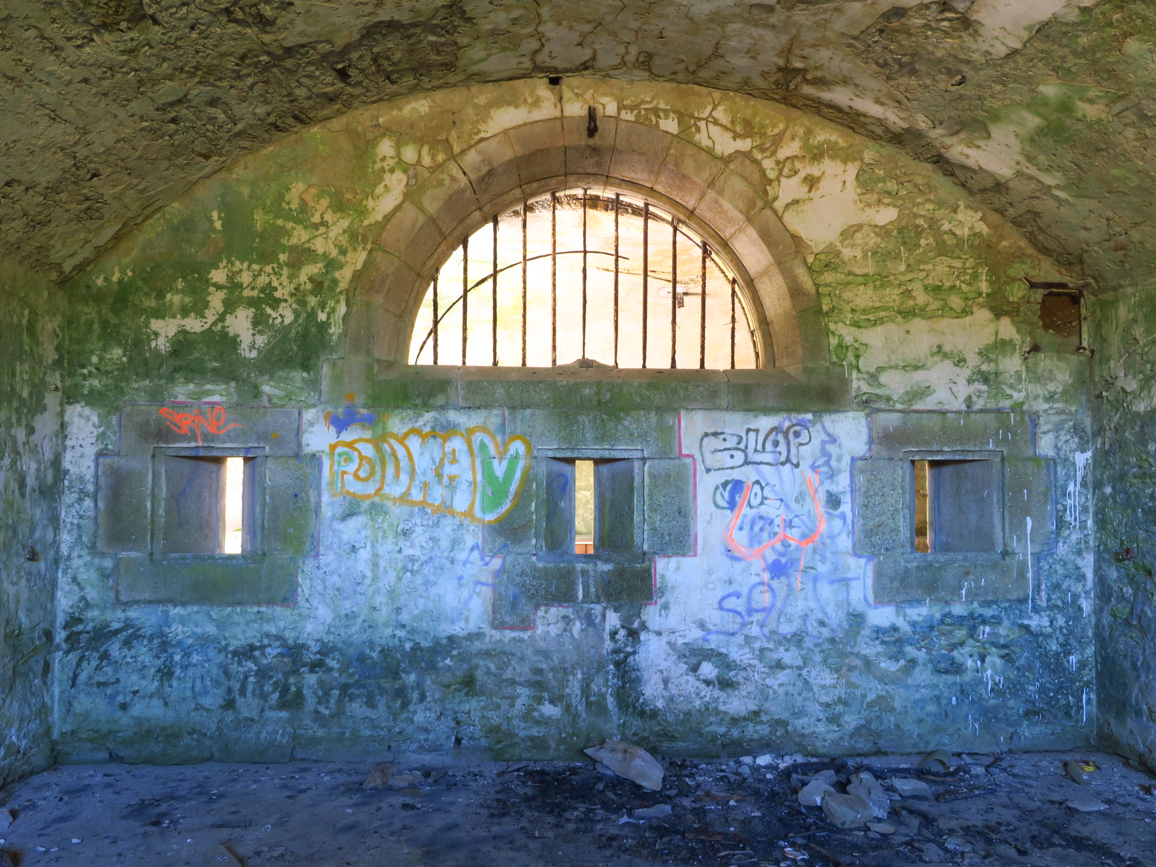 Groix, batterie du Bas-Grognon, corps de garde crénelé, chambrée, baie et créneaux de tir.Immatriculation