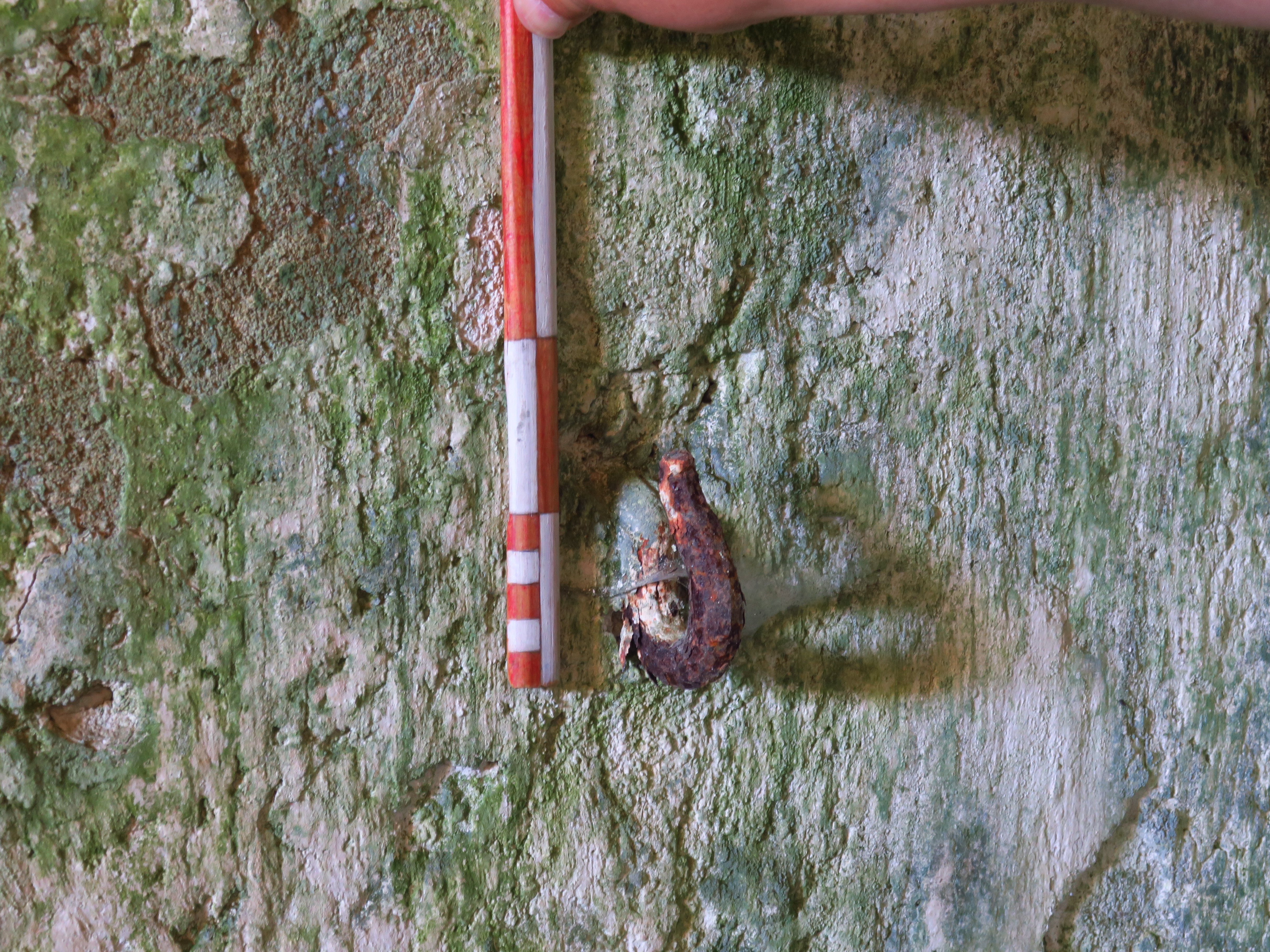 Groix, batterie du Bas-Grognon, corps de garde crénelé, chambrée, crochet pour hamac.Immatriculation
