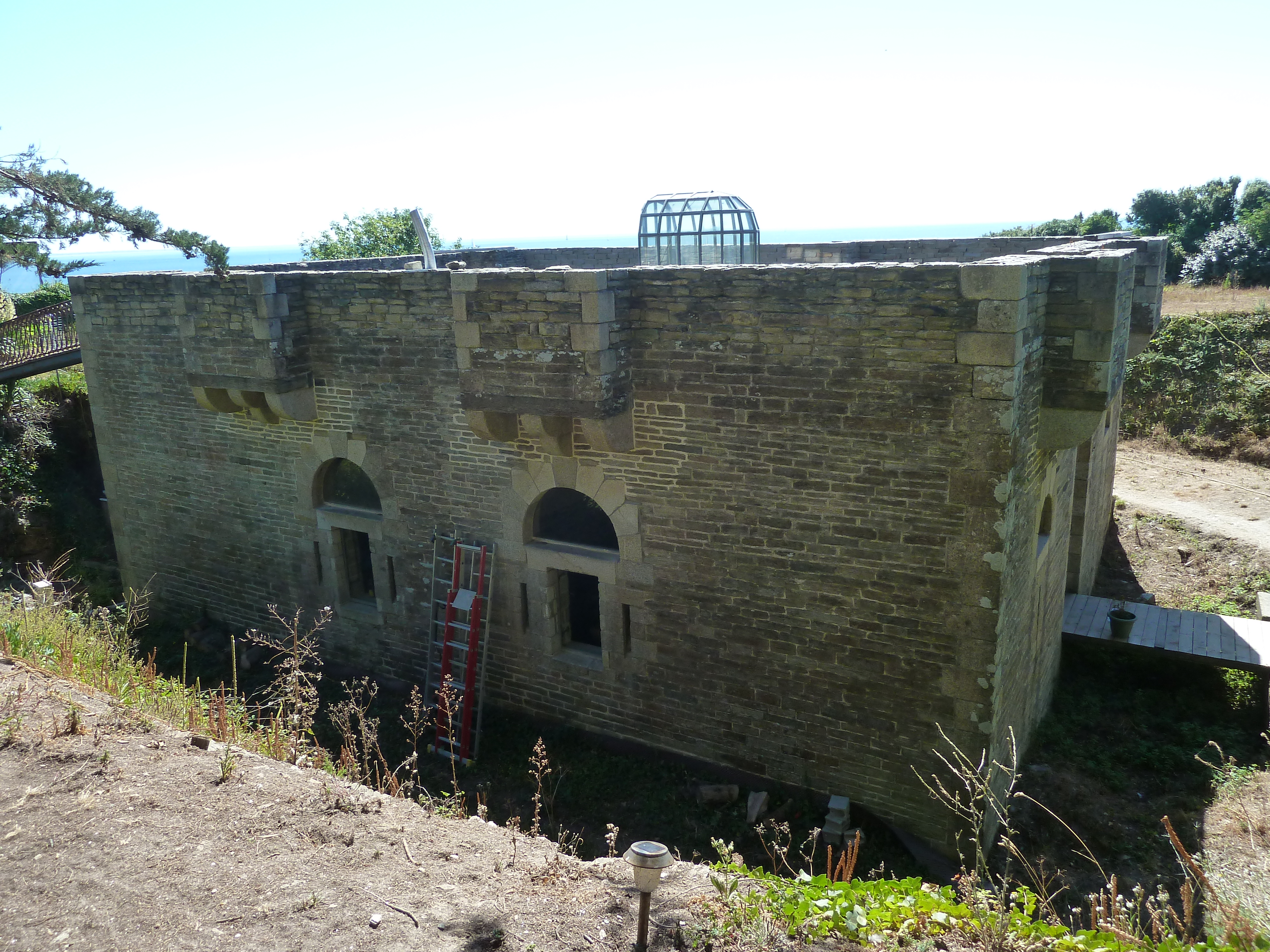 Groix, batterie de Nosterven, corps de garde crénelé, façade nord-ouest.Immatriculation