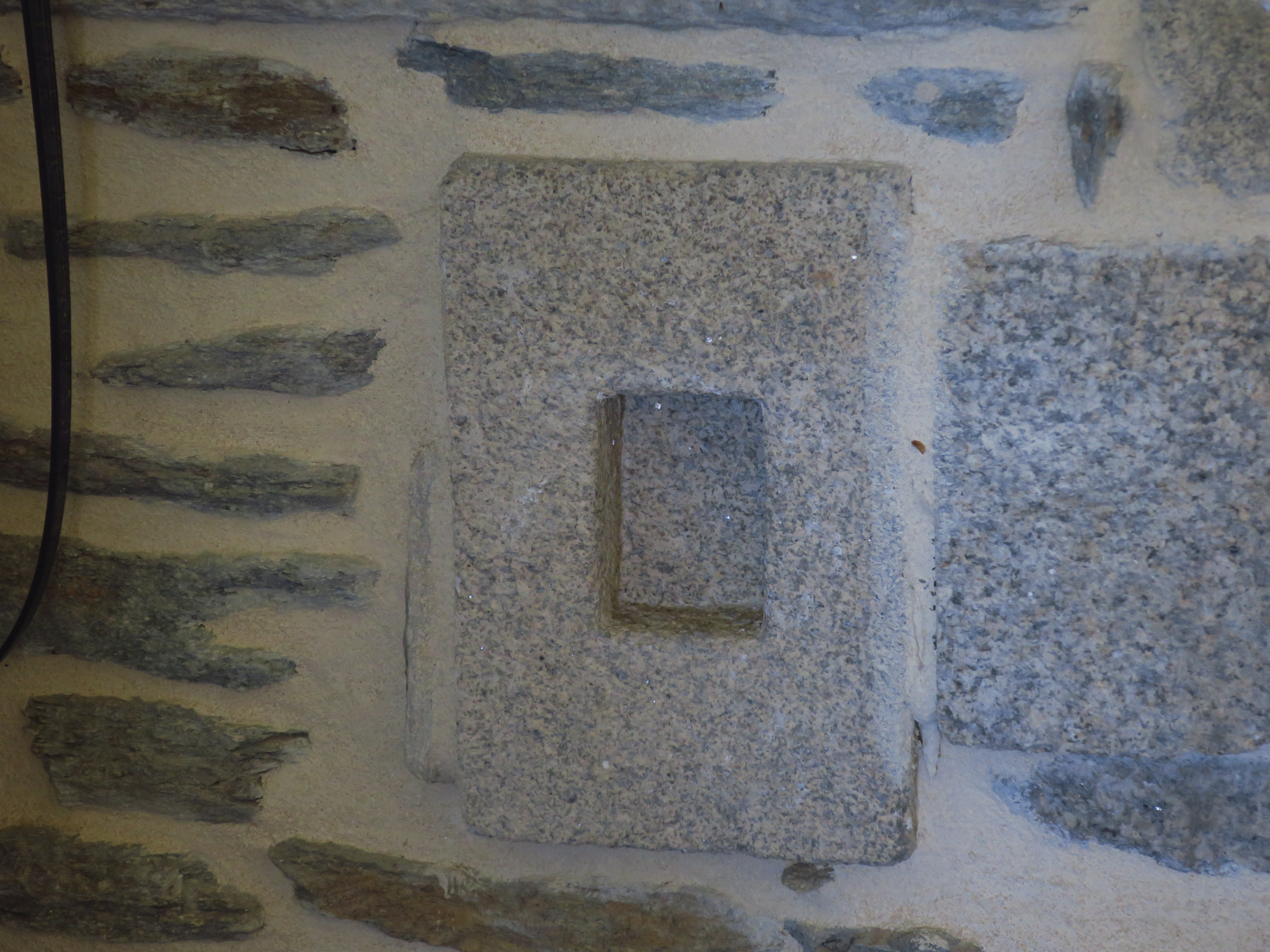 Groix, batterie de Nosterven, corps de garde crénelé, encoche pour barre d'accrochage de hamacs.Immatriculation