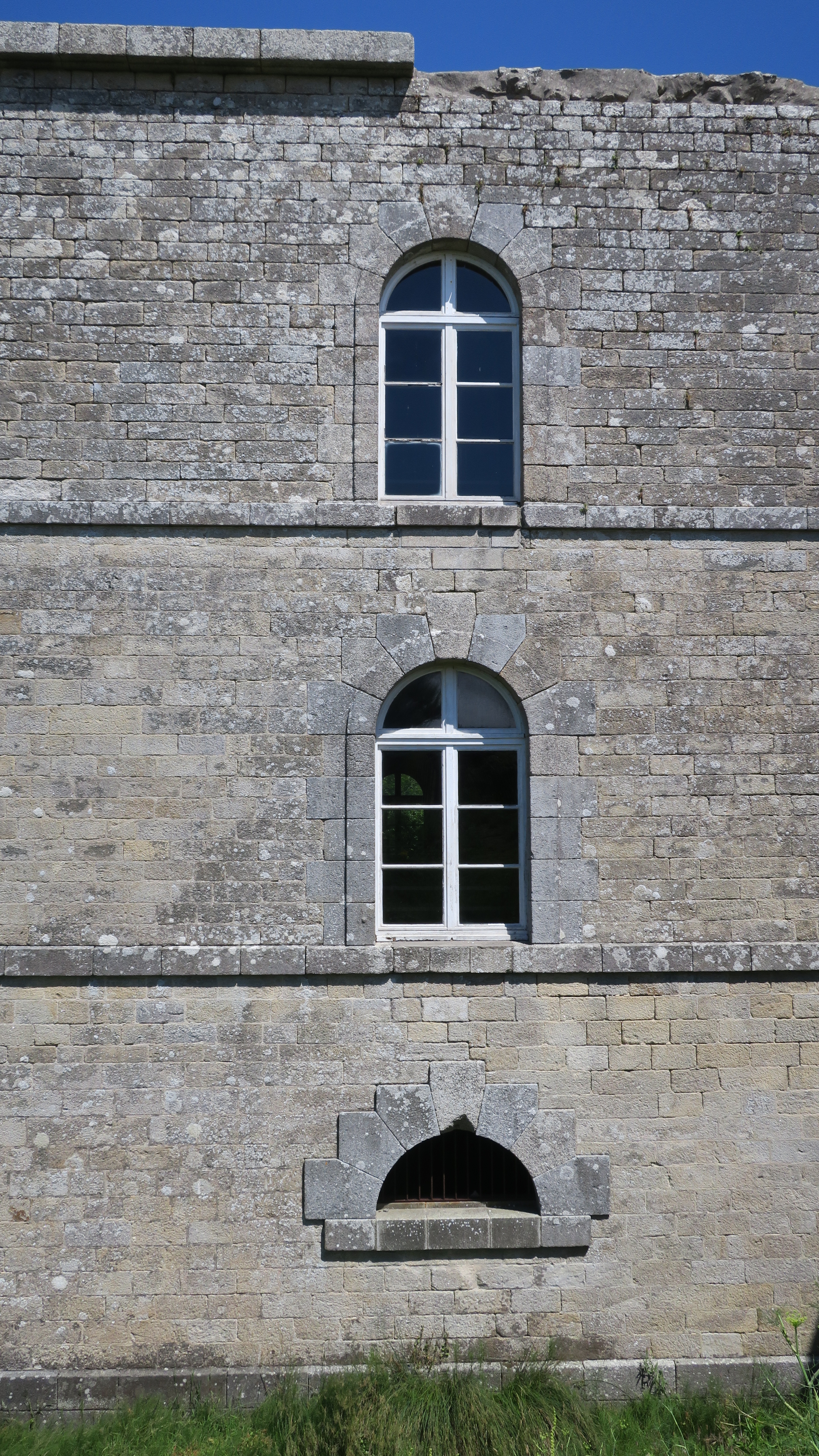 Hoedic, fort central, caserne à l'épreuve, détail de la façade ouest.Immatriculation