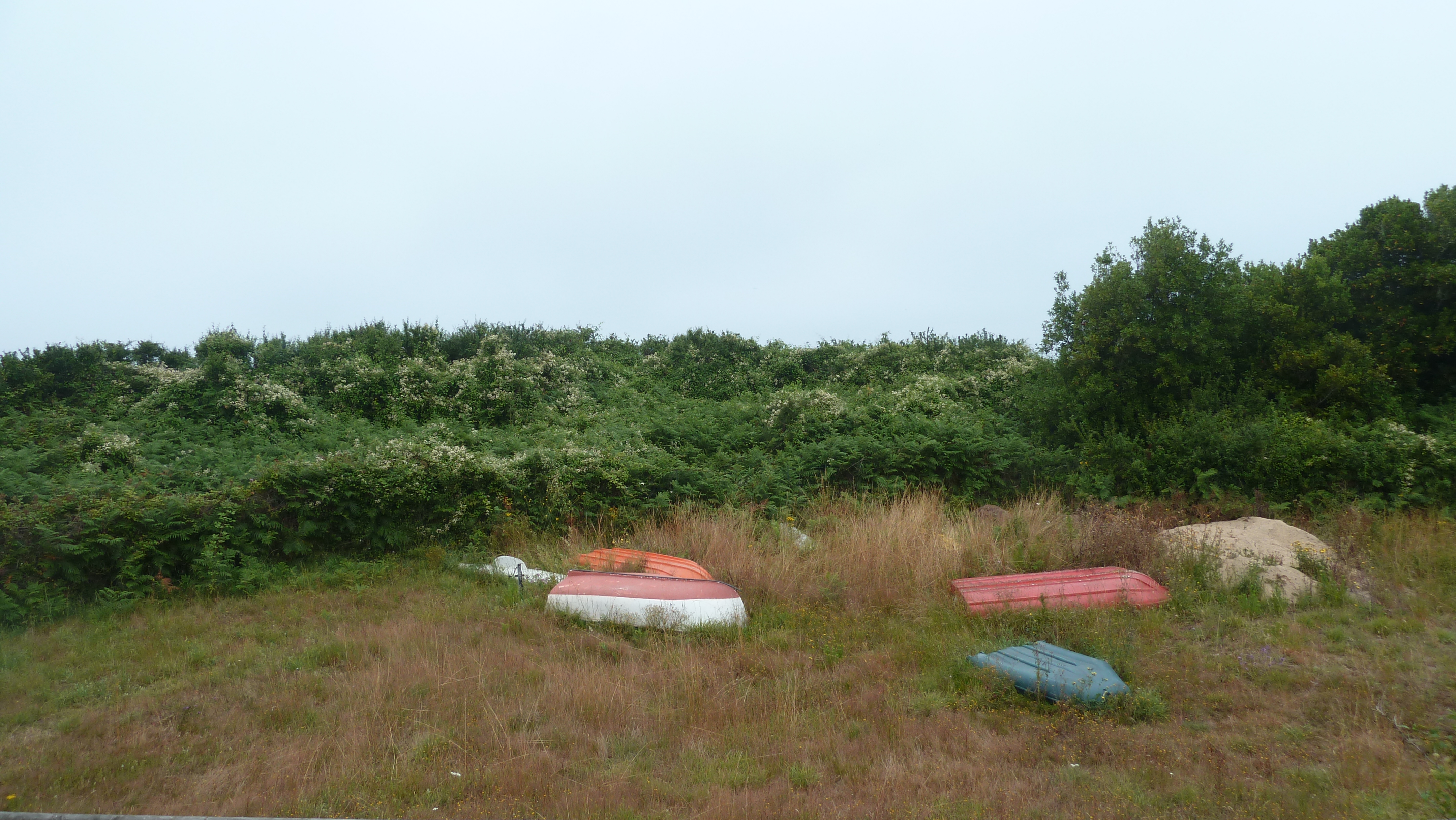 Groix, batterie du Gripp, le parapet de la batterie envahi par la végétation.Immatriculation