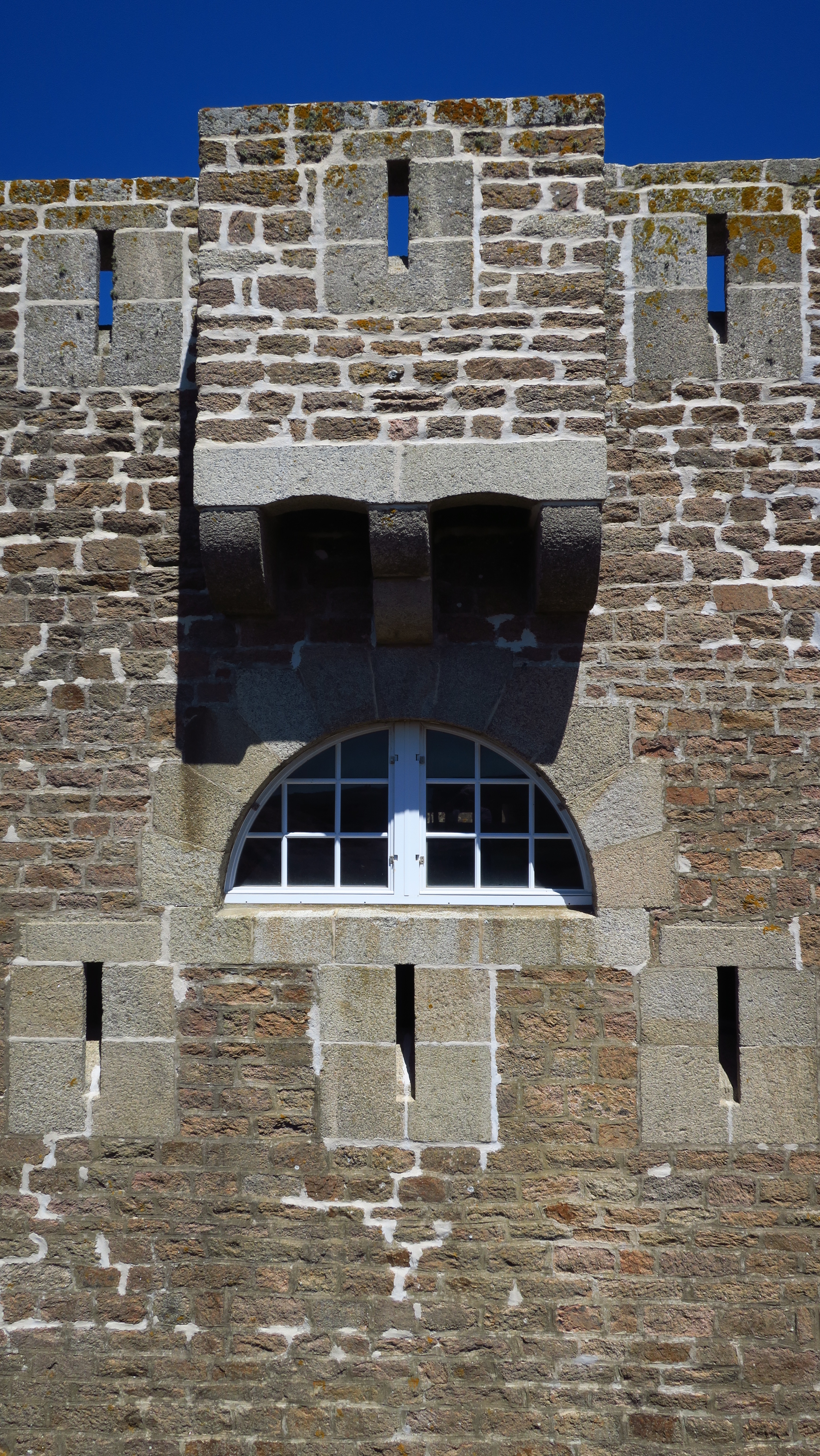 Île-d'Houat, batterie du Béniguet, corps de garde crénelé, détail de la façade sud.Immatriculation