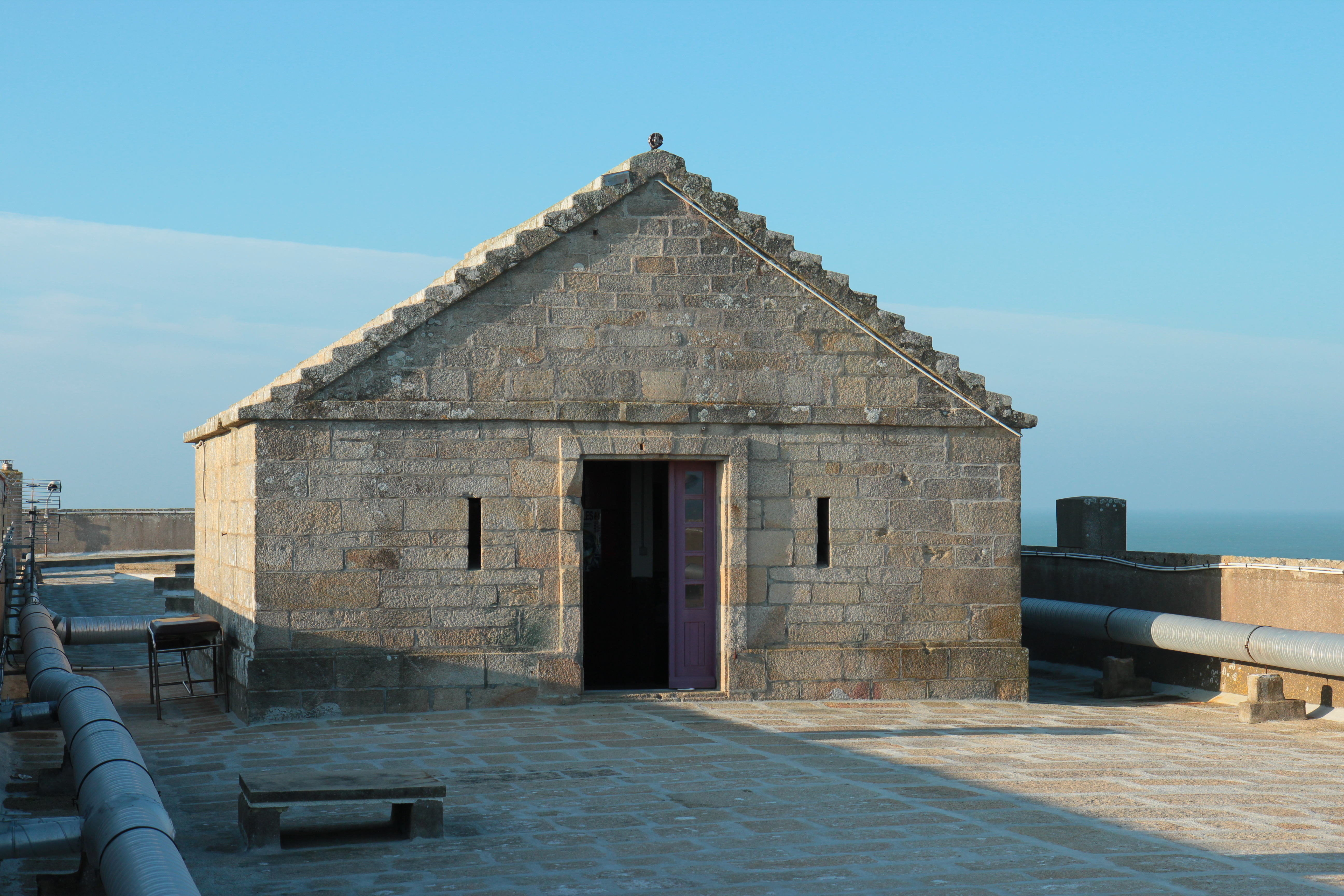 Saint-Pierre-Quiberon, fort de Penthièvre, caserne défensive, débouché de l'escalier sur la terrasse.Immatriculation