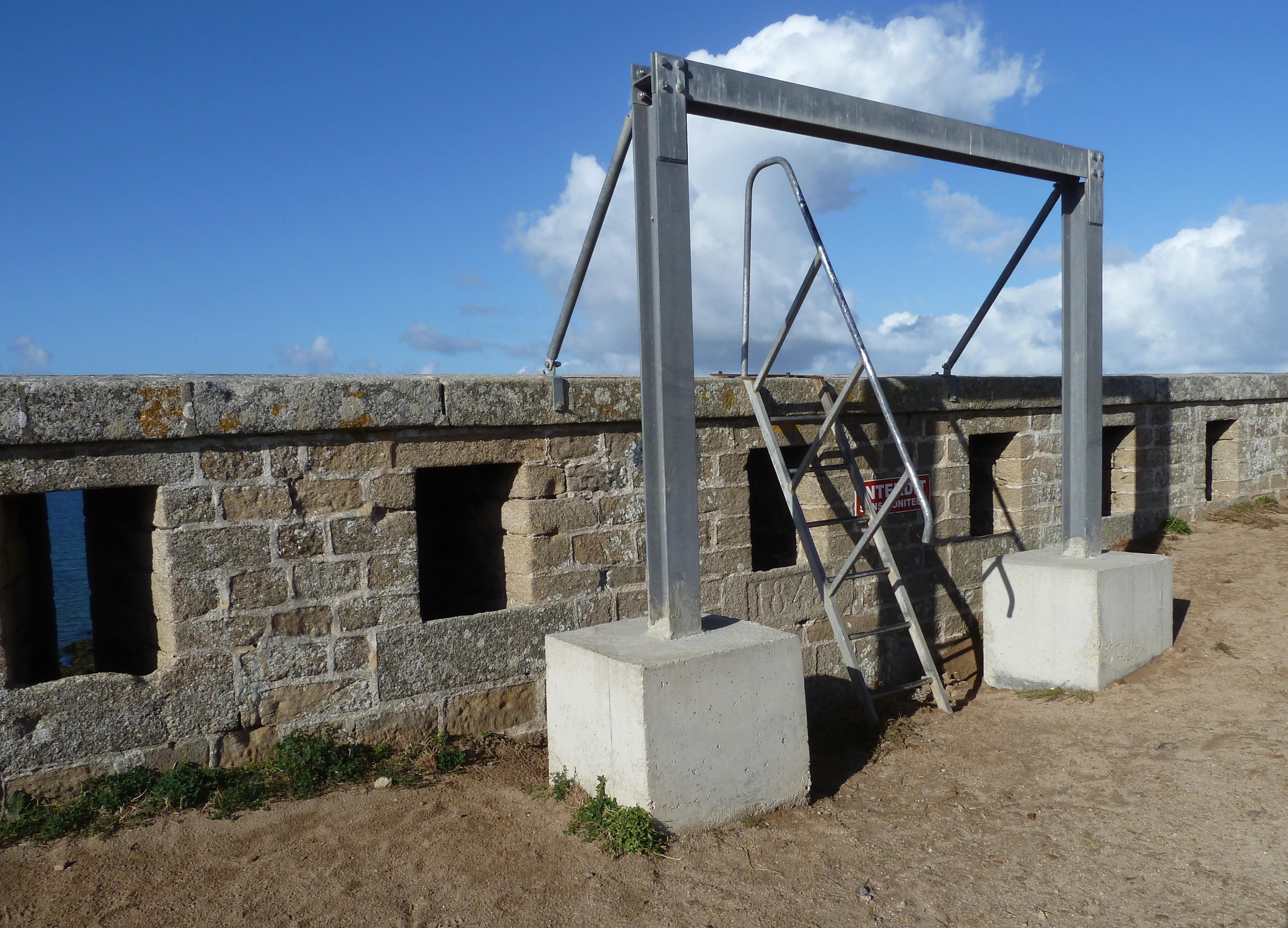 Saint-Pierre-Quiberon, fort de Penthièvre, enceinte, parapet crénelé du front sud-ouest.Immatriculation