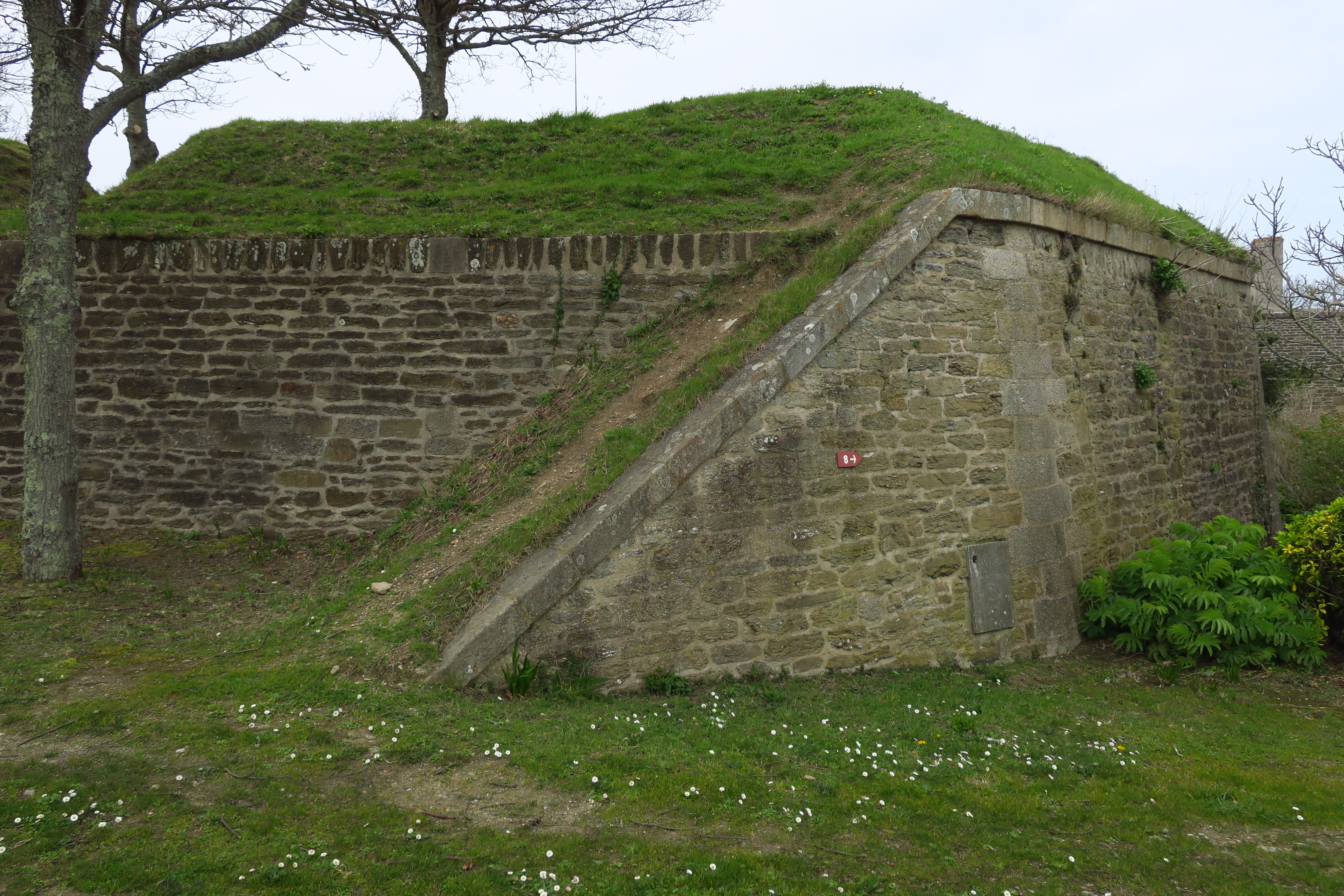 Le Palais, citadelle, cavalier du bastion 2, mur de soutènement des terrassements disparus et escarpe du 17e siècle dégagée par les restaurations.Immatriculation