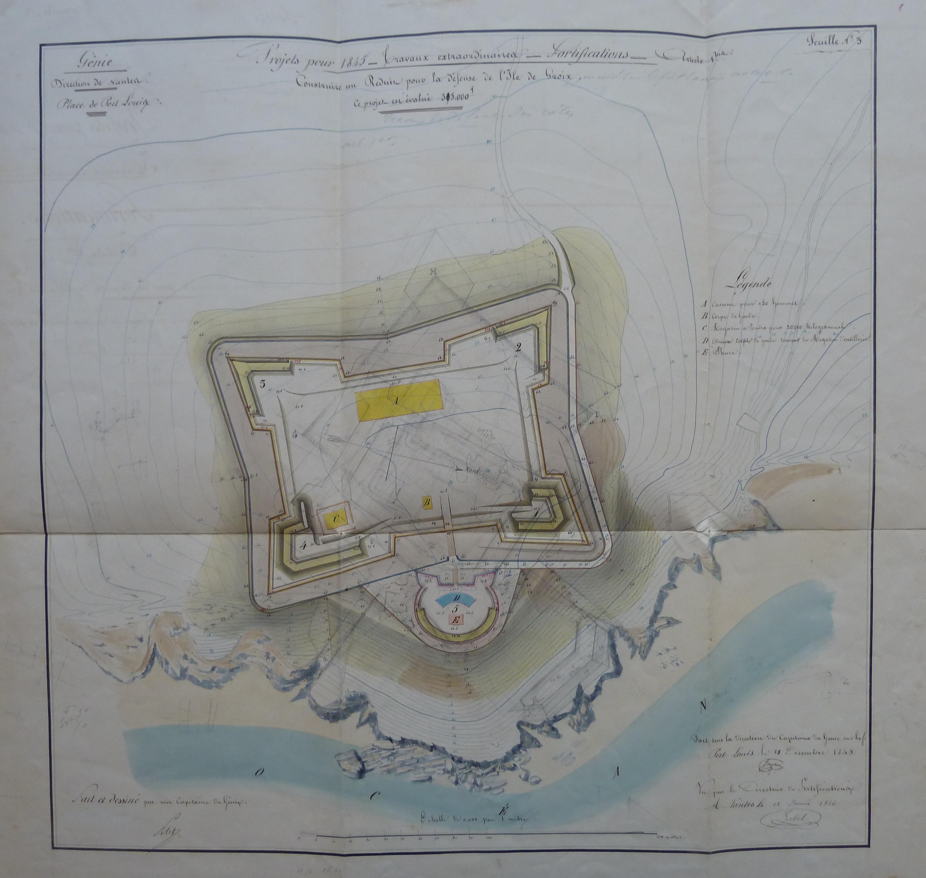 1 VH 1473. Place de Port-Louis, feuille n° 3 des projets extraordinaires pour 1845, construire un réduit pour la défense de l'île de Groix, 25 décembre 1845.Immatriculation