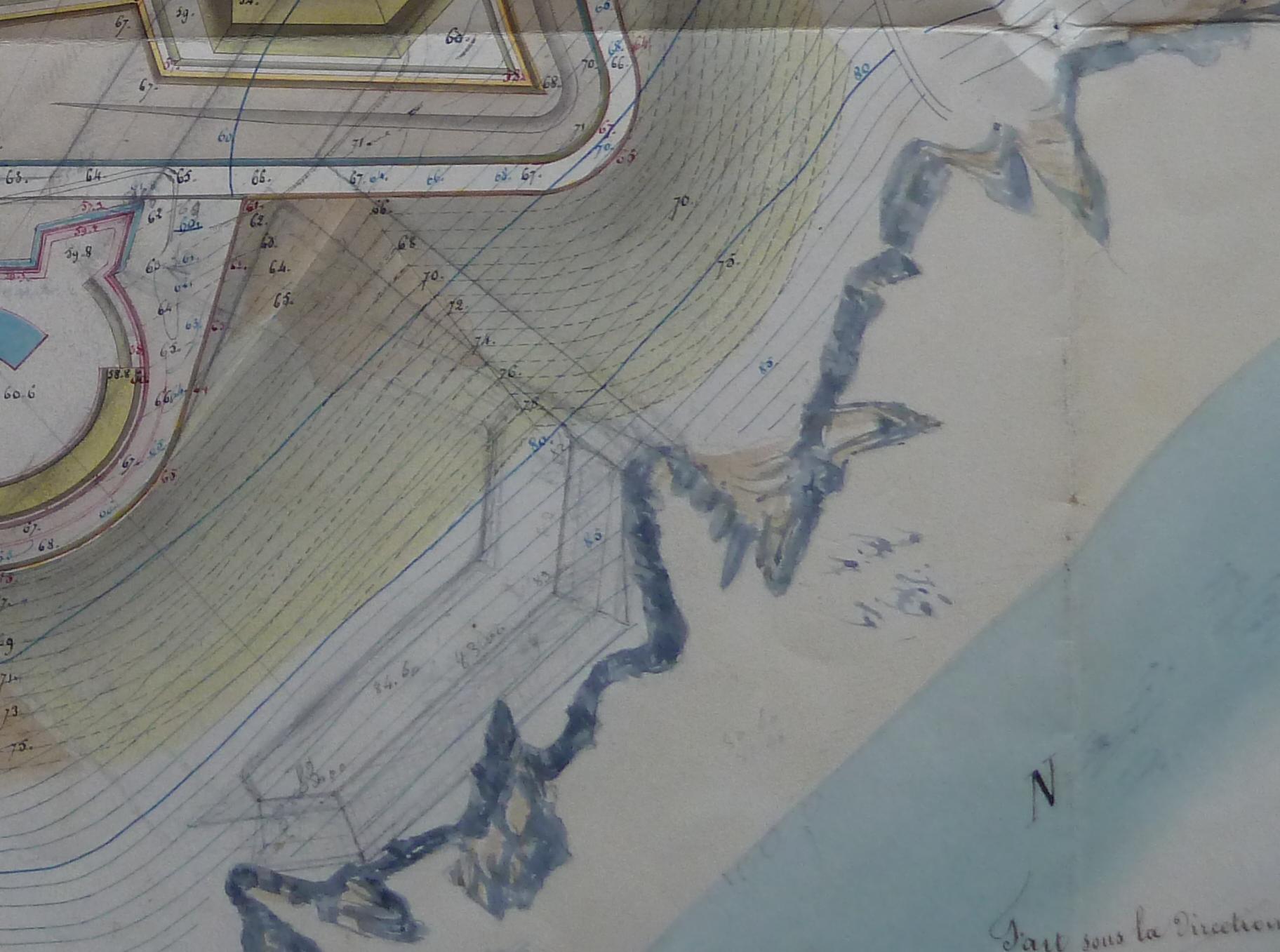 Service historique de la Défense, département Armée de Terre, Vincennes. Archives du Génie ; Article 8, Places françaises et d'Algérie : 1 VH 1473, Place de Port-Louis, projets et dépenses annuels, 1835-1846. Direction du Génie de Nantes, Place de Port-Louis, feuille n° 3 des projets extraordinaires pour 1845, construire un réduit pour la défense de l'île de Groix, 25 décembre 1845.