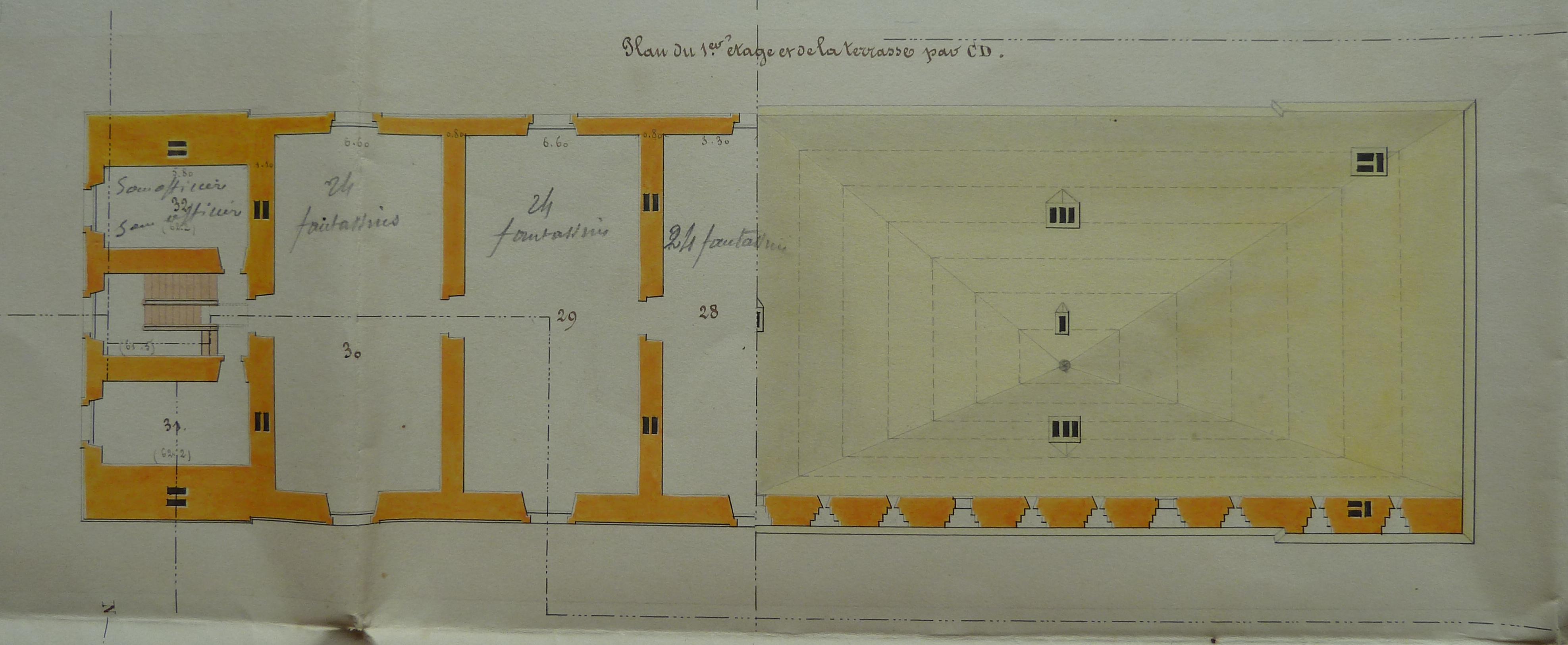 Service historique de la Défense, département Armée de Terre, Vincennes. Archives du Génie ; Article 8, Places françaises et d'Algérie : 1 VH 1474, Place de Port-Louis, projets et dépenses annuels, 1847-1856. Direction du Génie de Nantes, Place de Port-Louis, feuille n° 4 des projets pour 1848, travaux extraordinaires pour la défense des côtes, Ile de Groix, achèvement de la caserne du fort Lacroix, 25 décembre 1847.
