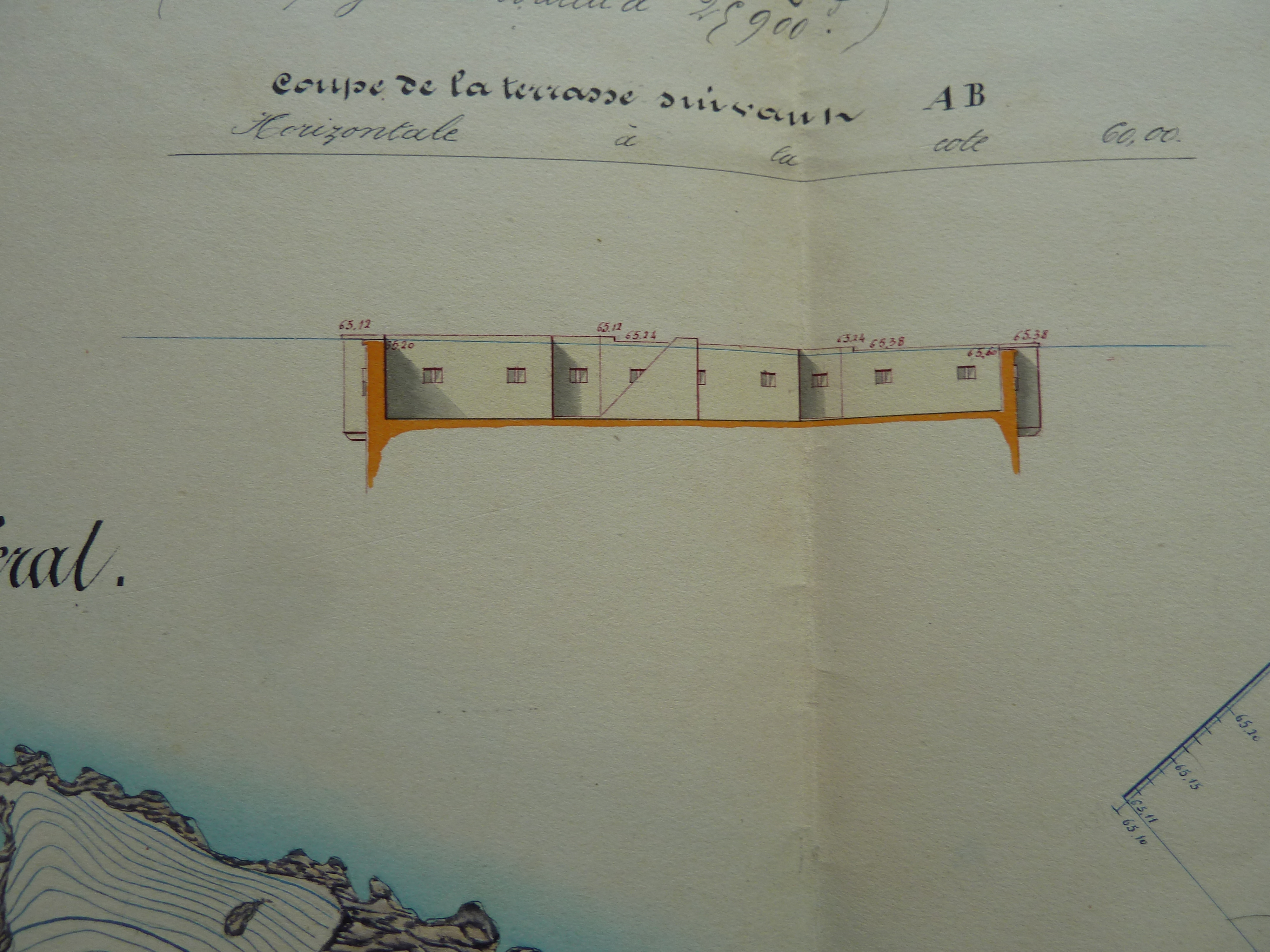 1 VH 1475. Place de Port-Louis, feuille n° 4 des projets pour 1857-1858, construire le corps de garde défensif de la batterie de Grognon (Ile de Groix), 19 décembre 1856.Immatriculation